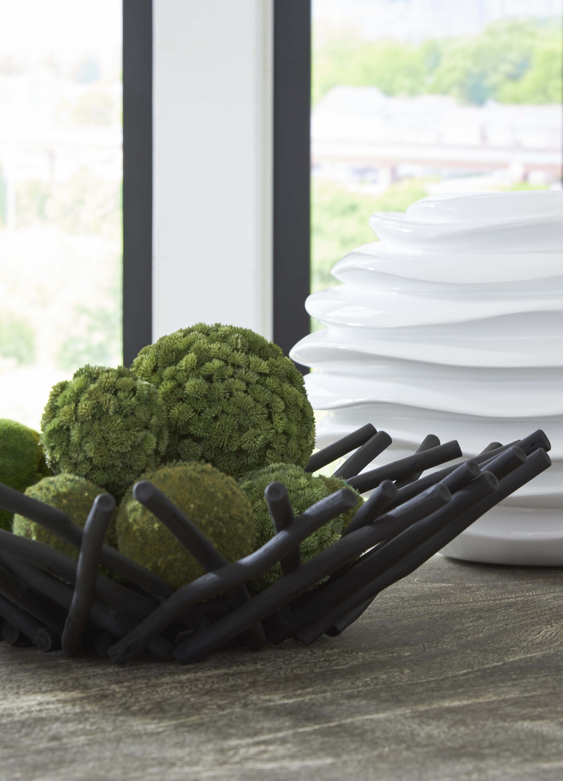 Description removeMany of our products are made in countries in which it is ingrained in craftspeople to do everything possible not to waste natural resources. Taking small limbs; whittling them into clean, contemporary building blocks; fastening them into decorative bowls; and painting them a sleek black is an exercise in great patience that results in earthy products with modern lines. This puts the Short Black Stick Bowl at the heart of the Phillips Collection ethos, which we call modern organic.Notice keyboard_arrow_downThis piece is crafted from natural solid wood. The color and character of wood grain may vary, adding a unique character to your piece.