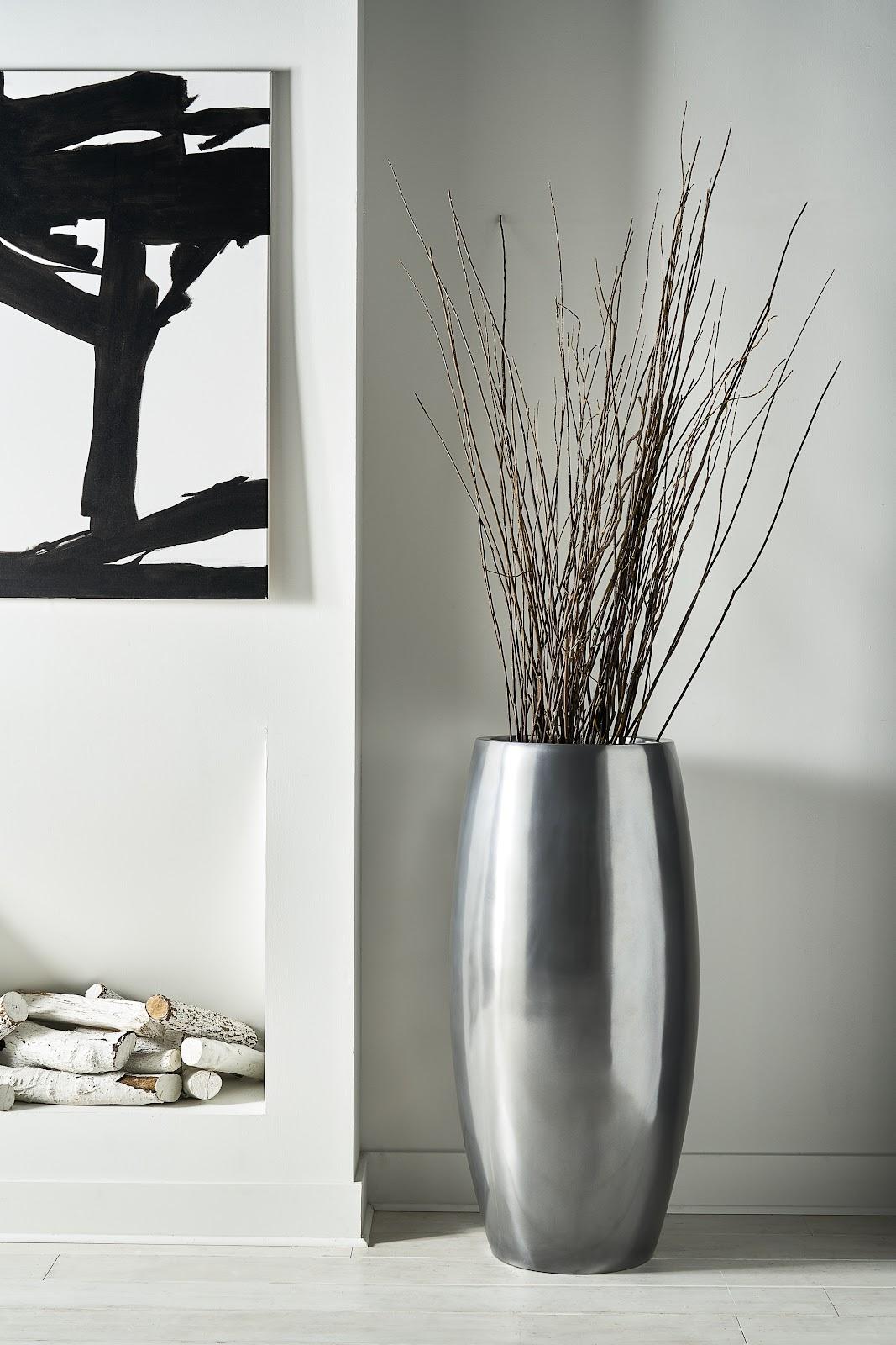 Description removeThe metallic finish on the Elonga Small Polished Aluminum Planter convinces the eye that this tall planter with contemporary lines is made of metal but it's fashioned from composite, which our talented finish artisans have given a brilliant sheen. This means it will far outlast any silver planter made from a material that could rust. The combination of sheen and a clean profile makes this piece a shoe-in for the Phillips Collection ethos, which we call modern organic. We offer several finishes and sizes of this design.Notice keyboard_arrow_downThe Polished Aluminum finish is real aluminum powder applied to cast resin form. This finish is suitable for indoor and outdoor use.