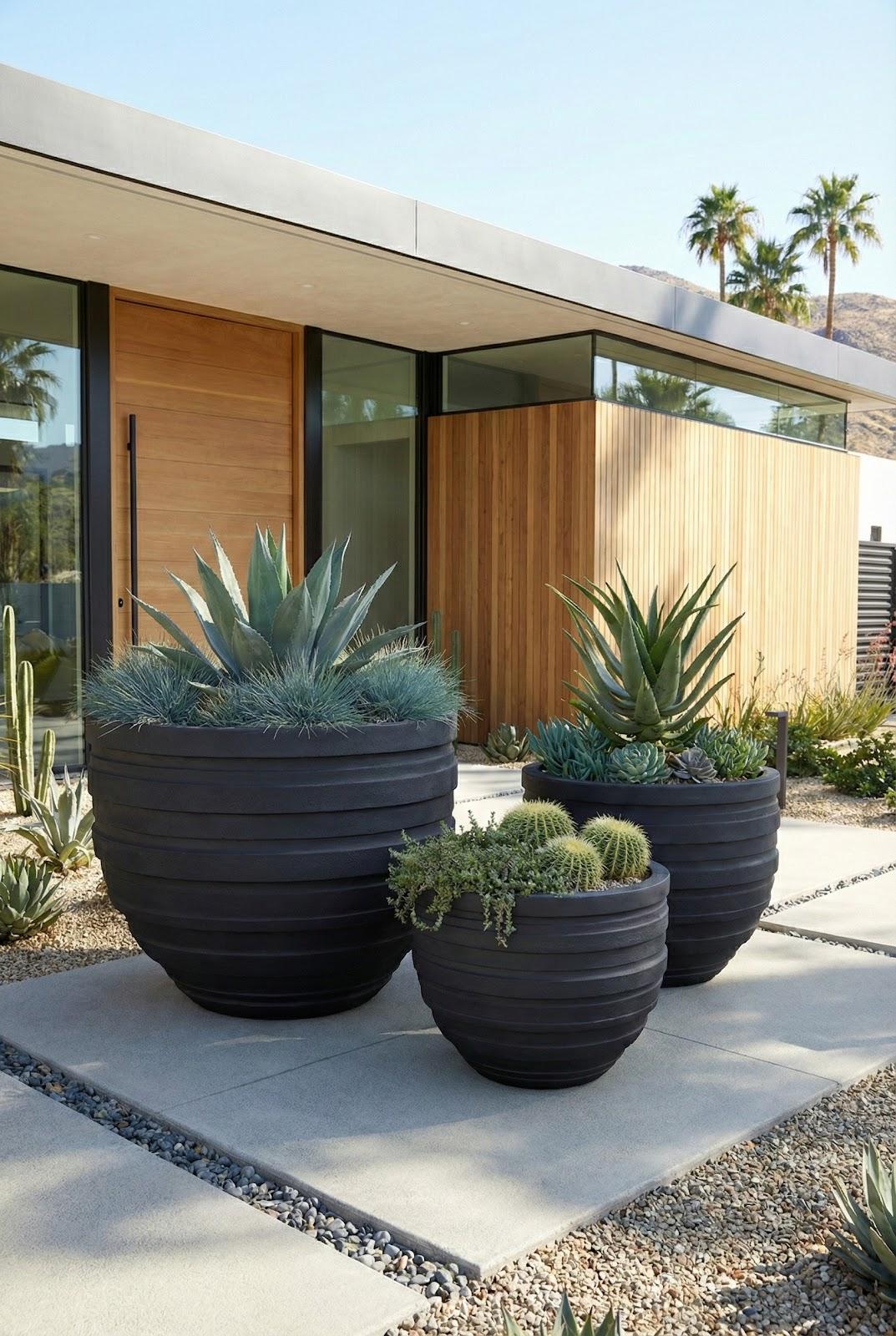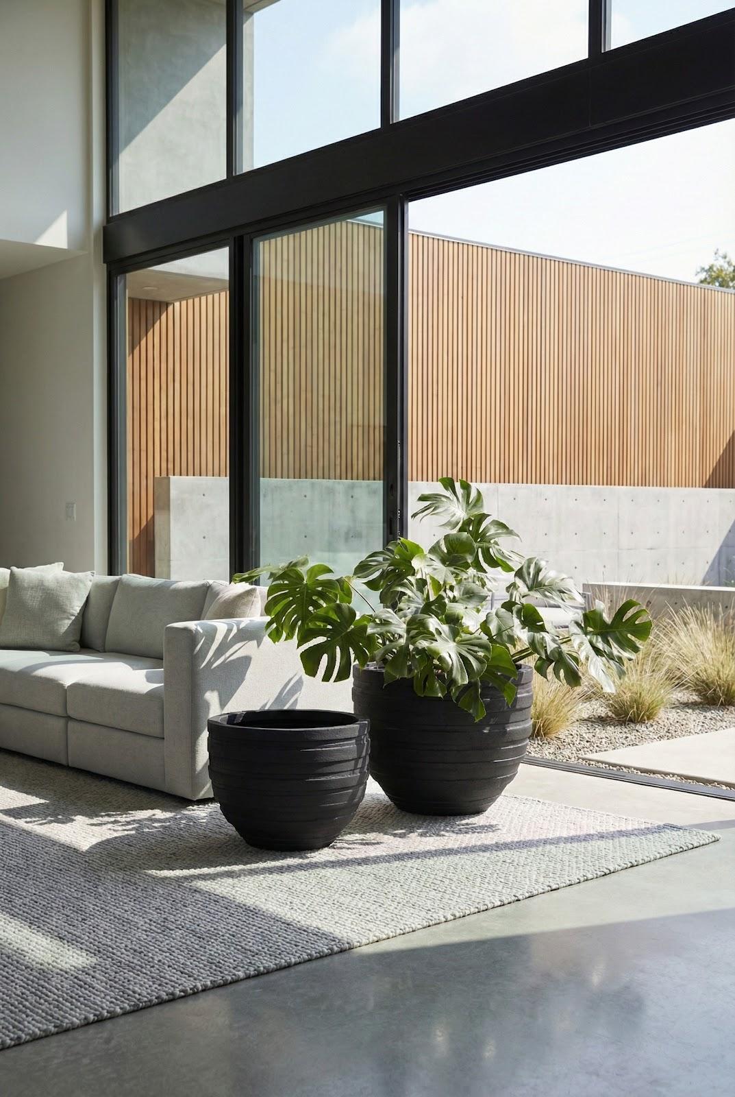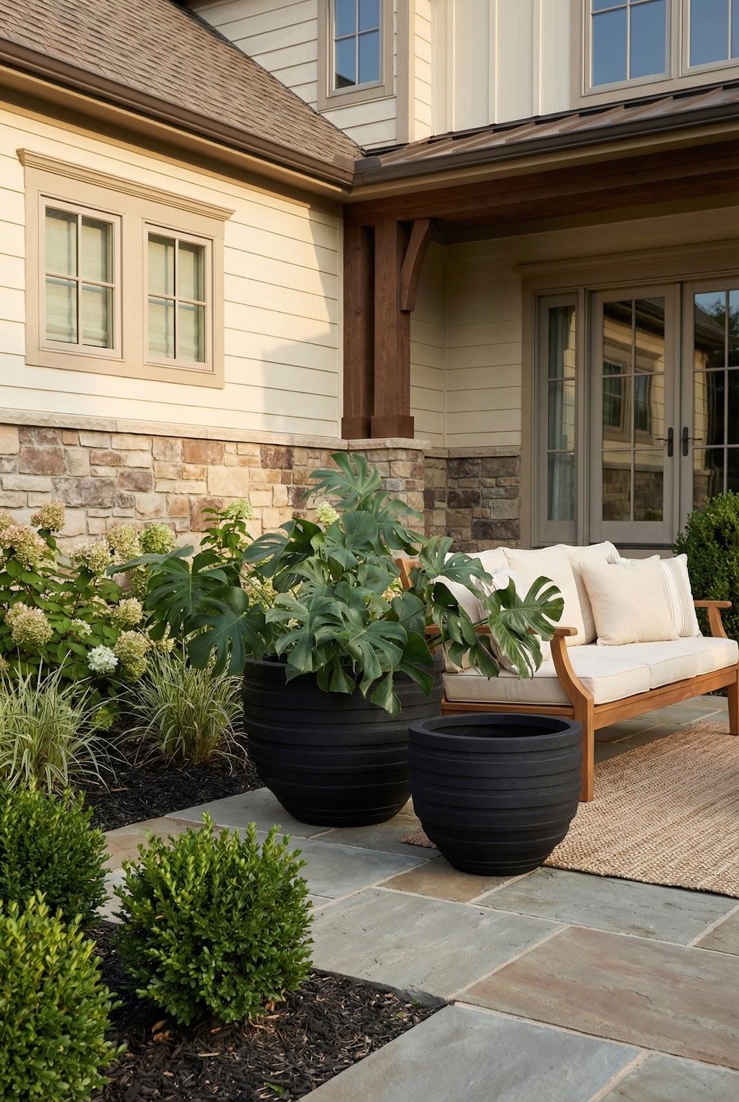 Description removeThe June Small Black Planter is ethereal in its matte black finish. Made of composite, its surface is striated to mimic fabric that has been wrapped around a vessel and slathered in a beautiful papier-mâché treatment. One of the loveliest aspects of this design is that it is strikingly contemporary for a garden planter thanks to its crisp black finish and the top lip that rolls into its interior to leave the shape clean-lined.Notice keyboard_arrow_downThe Stone Cast Finish is composed of real crushed stone mixed with resin. This finish is suitable for outdoor and indoor use and has a rough texture like real stone.