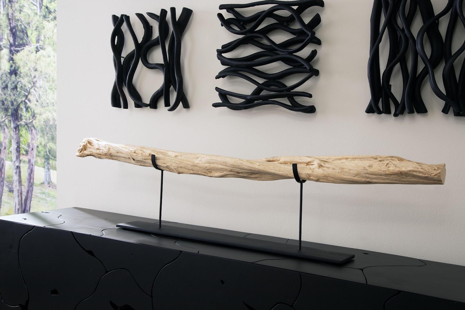 Description removeHolding a gnarled limb in its contemporary grasp, the sleek black stand balancing the Vine Sculpture creates our favorite juxtaposition, combining modern and organic. We harvest the pieces of wood that end up on these sculptures from the jungles of Asia, using as many pieces of each tree we pull from the forest floor as possible. The Vine Sculpture is proof that there is beauty to be made, even with elements most people would see as castaways.Notice keyboard_arrow_downThis piece is crafted from natural solid wood. Color and texture in wood will vary and natural holes and subtle openings add unique character to your piece.