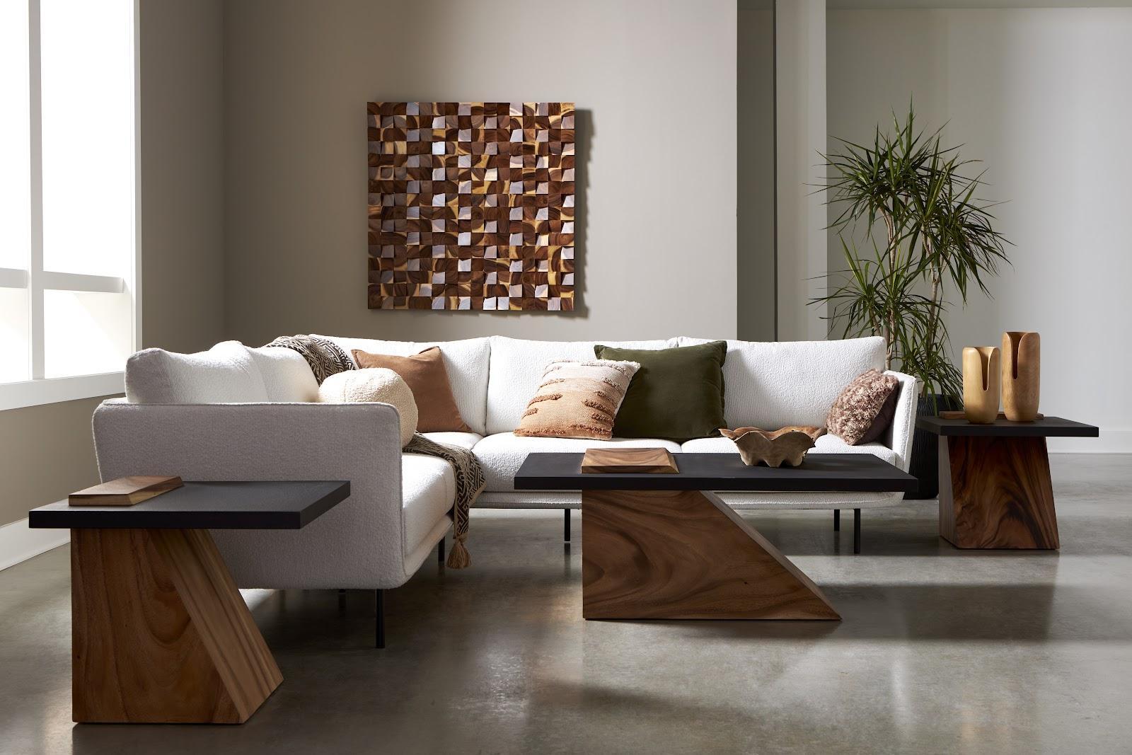 Description removeThe Blocks Large Wall Art is made of irregular end-cuts of chamcha wood that have been artistically placed by hand onto a base. Providing the sculptural piece with added interest are the differing heights of the pieces of wood that extend forward, and the alterations in the direction of the wood grains, the angles, and the cuts. Though the piece was created with painstaking precision that only the most talented craftspeople can achieve, it looks organically happenstance. Also bringing the piece a feel of authenticity is the fact that the wood is reclaimed so the natural characteristics of the material’s life before becoming art adds tremendous patina. This piece of wall art reflects the ethos that Phillips Collection personifies: modern organic.Notice keyboard_arrow_downThis piece is crafted from natural solid wood. Color and texture in wood will vary and natural holes and subtle openings add unique character to your piece. Wood "breathes" and it is normal for cracks to present themselves over time. This is not considered a defect.