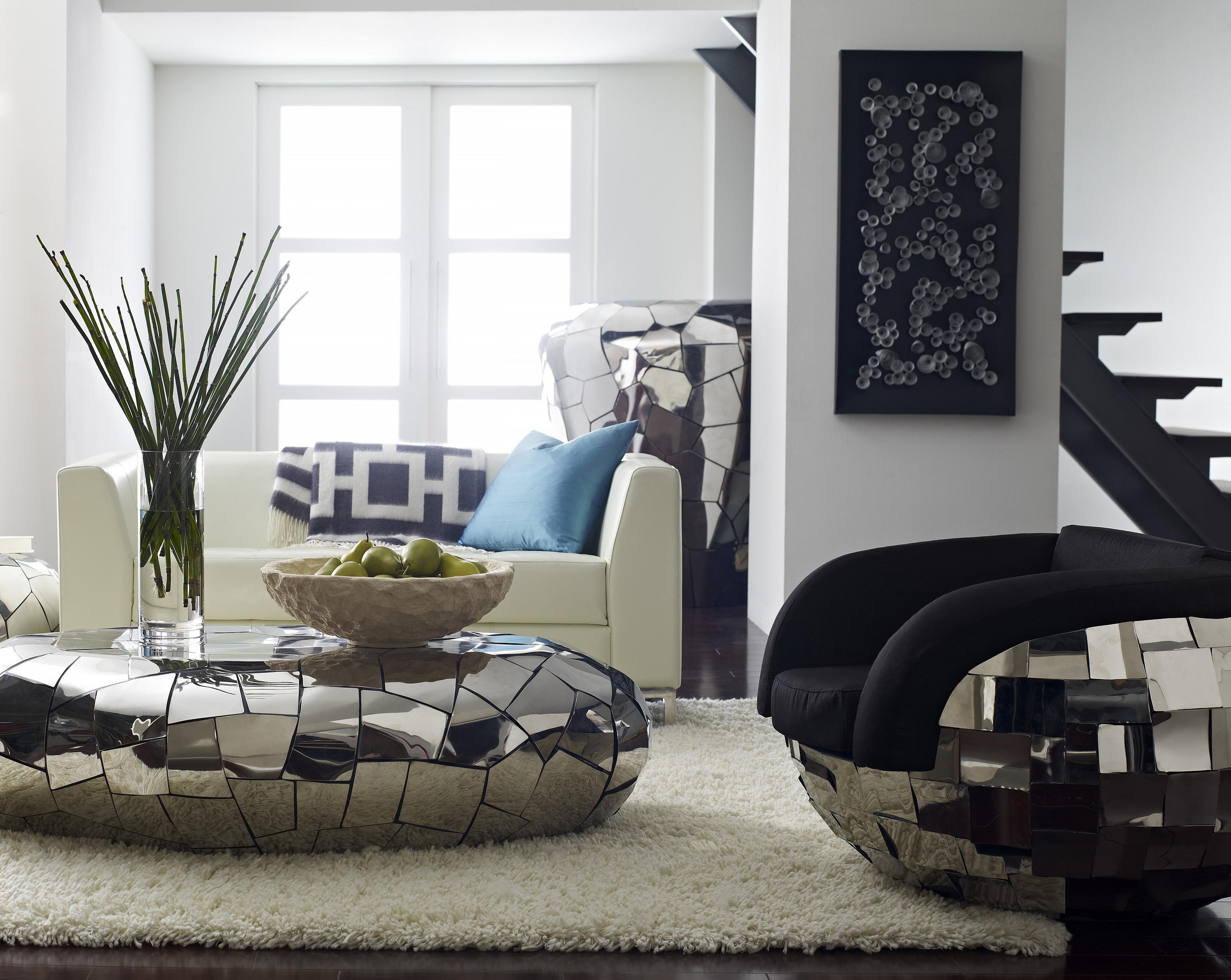 Description removeFacets always bring extra liveliness to a design, which is evident in our Crazy Cut Collection of furnishings. Case in point is the Crazy Cut Oblong Coffee Table with a segmented surface that will make it a lively element during morning coffee with the newspaper or evening cocktails with your pals. Made of composite and stainless steel in a brilliant silver finish, this whimsical silver coffee table will be the talk of any party. Each of these pieces reflect the ethos that the Phillips Collection personifies: modern organic.Notice keyboard_arrow_downDetail and craftsmanship is brought to light in our Crazy Cut Collection. Each piece of stainless steel is skillfully cut and then hand molded to an organic resin form. The stainless steel is polished to a reflective mirror like finish, so color will be determined by its surroundings. Note that the photo was taken in a white space, so the color appears light and uniform in this case.