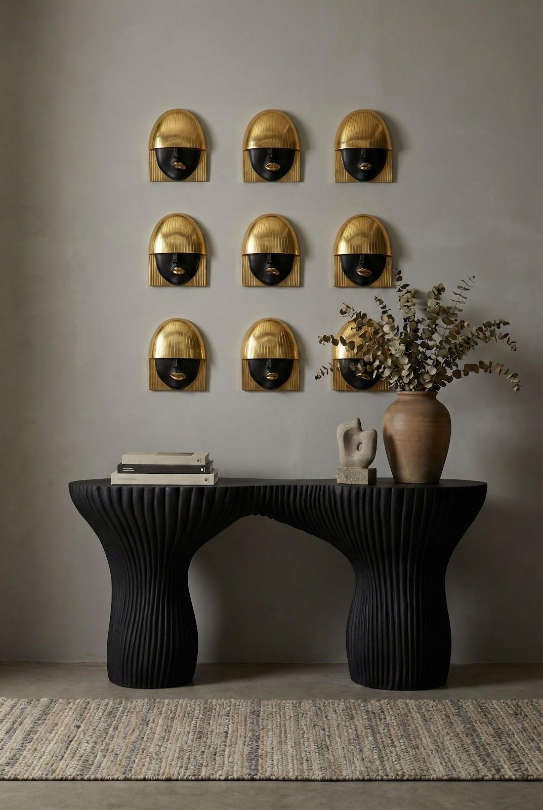 Description removeFew features of the human face illustrate a person’s mood more than the mouth. With our Fashion Faces Wall Art Collection, there’s no doubt a trio of emotions are passing across our fashionistas’ profiles. The Fashion Faces Small Black and Gold Wall Art Set includes three decorative sculptures made of composite in a mix of black and bright gold finishes. These beauties with perfect bangs include smiling, pouting, and kissing wall sculptures. We also offer these sculptures as a set in gold and white, and in silver and white. Each of these pieces of decorative wall art reflects the ethos that Phillips Collection personifies: modern organic.Notice keyboard_arrow_downThe gold leaf finish applied to our products is known for its luxurious metallic appearance. However, this finish can be susceptible to scratching if not handled carefully. Gold leaf is a delicate material; abrasions may occur during routine use or contact with abrasive surfaces.