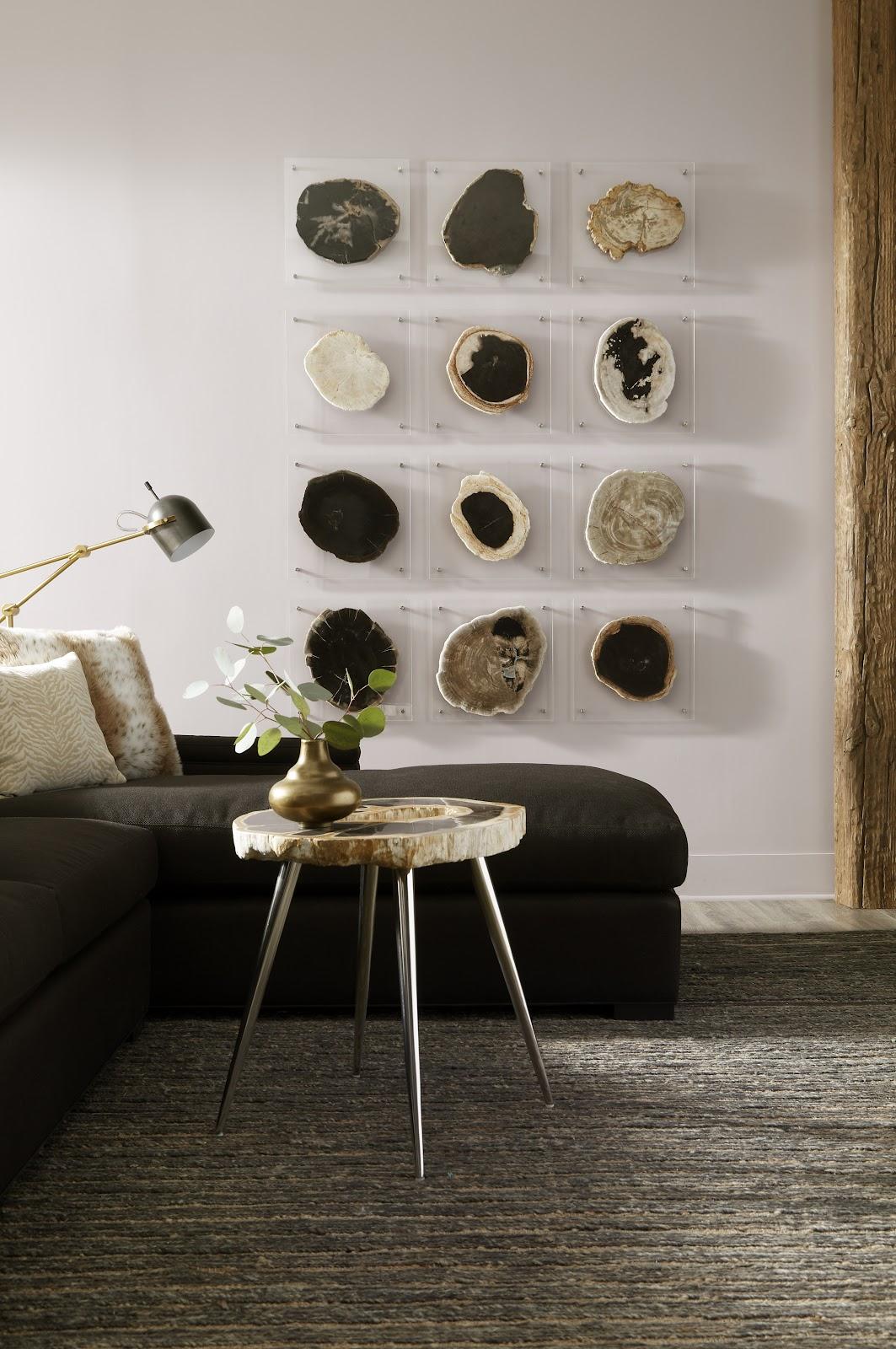 Description removeThe Floating Petrified Single-Slice Wall Art is made of a clear piece of acrylic behind which we've fastened a slice of petrified wood that was cut and polished by hand in Indonesia. The clarity of the acrylic creates the illusion that the pieces of wood are floating, and the transparency is enhanced by the clean silver brads that attach it to the wall. The contemporary feel of the overall piece and the powerful natural graining of the wood make this wall art perfect for the Phillips Collection ethos of modern organic. We offer this design with triple and double slices.Notice keyboard_arrow_downThis natural petrified wood item will vary in color from light to dark tones. It may also vary in shape and size or have natural cracks and splits, giving you your own one-of-a-kind piece from our assortment.
