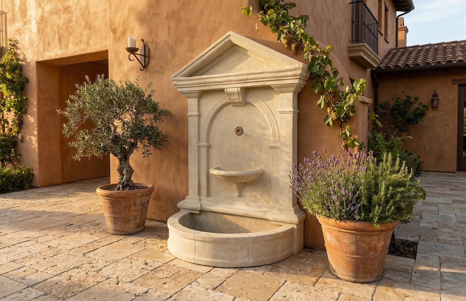 Description removeThe Florentine Fountain in Roman Stone brings timeless architectural charm to any space with its sculpted arch, and gently flowing spout. Finished in a Roman Stone that evokes hand-carved stone, the design captures the look of classic stonework while being crafted from durable resin for long-lasting performance. Water streams gracefully into the curved basin below, creating a soothing sound and a striking focal point. Designed for outdoor use, this fountain adds refined structure and tranquility to gardens, courtyards, or patios.Notice keyboard_arrow_downOur Roman Stone finish is crafted using a unique blend of crushed stone and resin, backed by a durable fiberglass structure. As a result of this artisanal process, hairline cracks may naturally appear in the surface. These fine lines are an expected characteristic of the material and do not compromise the strength, stability, or structural integrity of the piece. They are not considered defects or damage. Each item reflects the handcrafted nature of the Roman Stone finish, adding to its individual charm and timeless appeal.