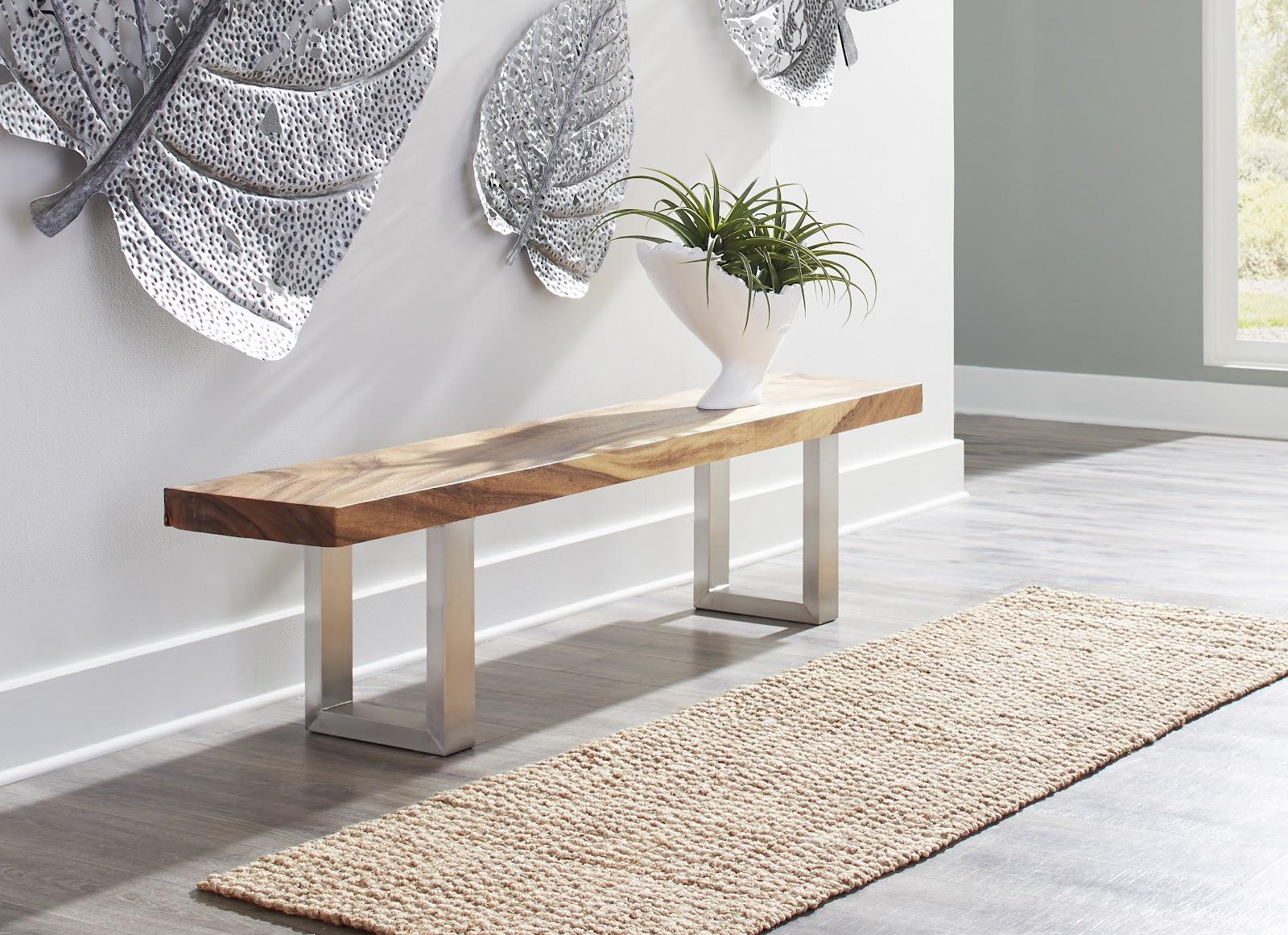 Origins Straight Edge Bench, Brushed Stainless Legs