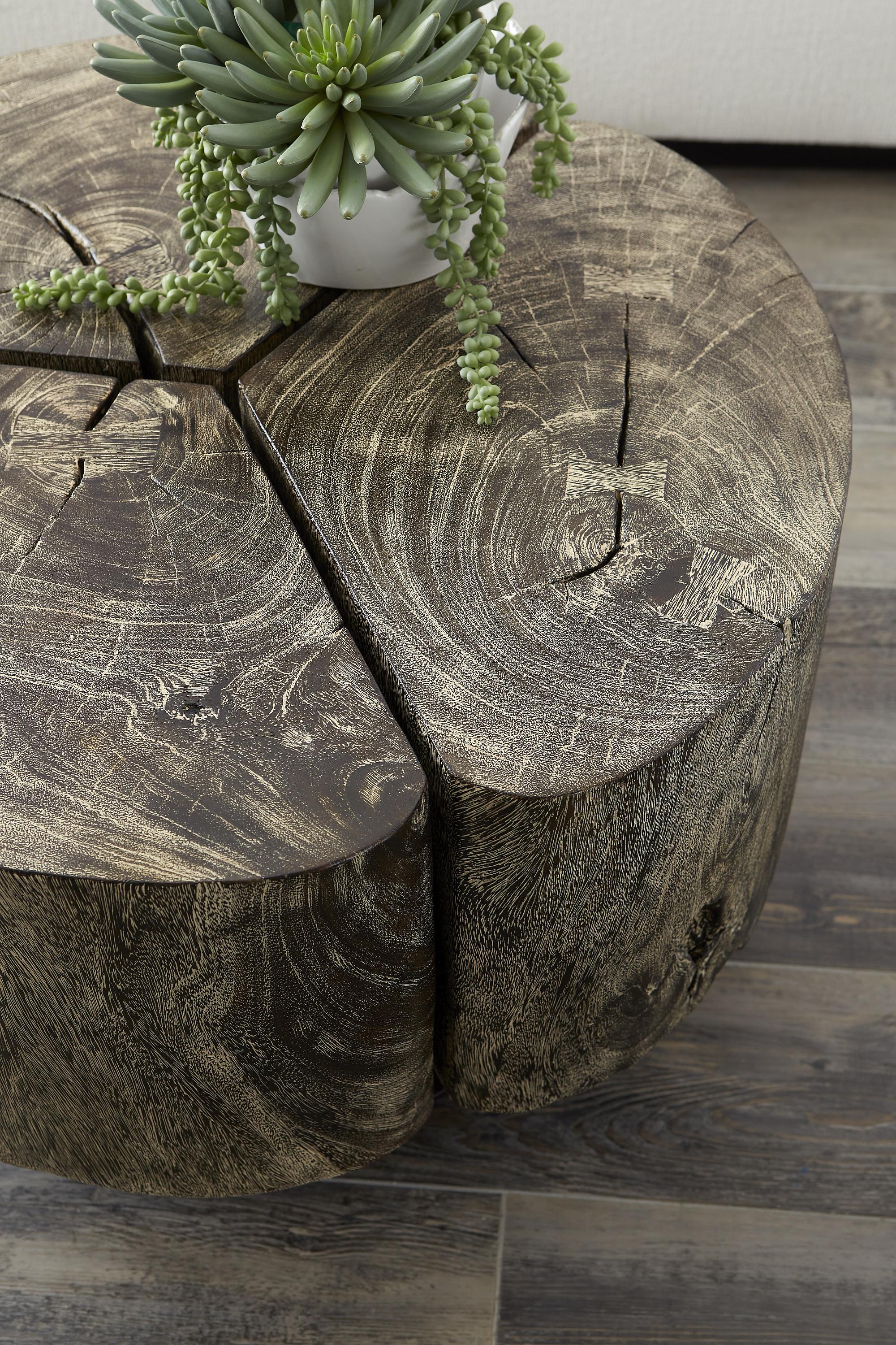 Description removeYou won’t need any other lucky charm when you place the Clover Gray Coffee Table in a room. Carved from blocks of chamcha wood and treated to a gray stone finish, the curved sections that make up the top are affixed to a black metal base. What makes this wood coffee table extra special are the swirls of graduated hues that darken as they flow toward the middle, the whorls representing the rings of the tree as it grew. This is only possible because we have reclaimed a portion of a massive felled specimen that would have been abandoned to decompose on the forest floor and made a piece worthy of its beauty. We also offer the Clover in a natural version. Both of these reflect the ethos that the Phillips Collection personifies: modern organic.Notice keyboard_arrow_downThis piece is crafted from natural solid wood.