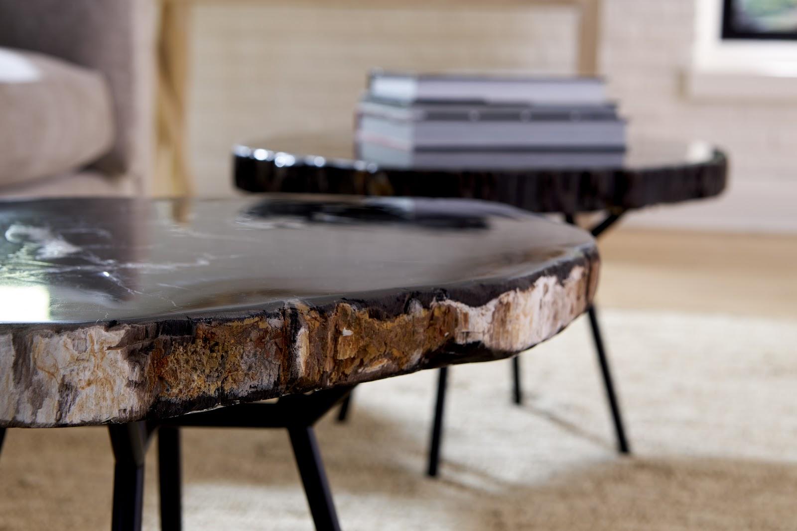 Petrified Coffee Table, Round, Metal Black Base