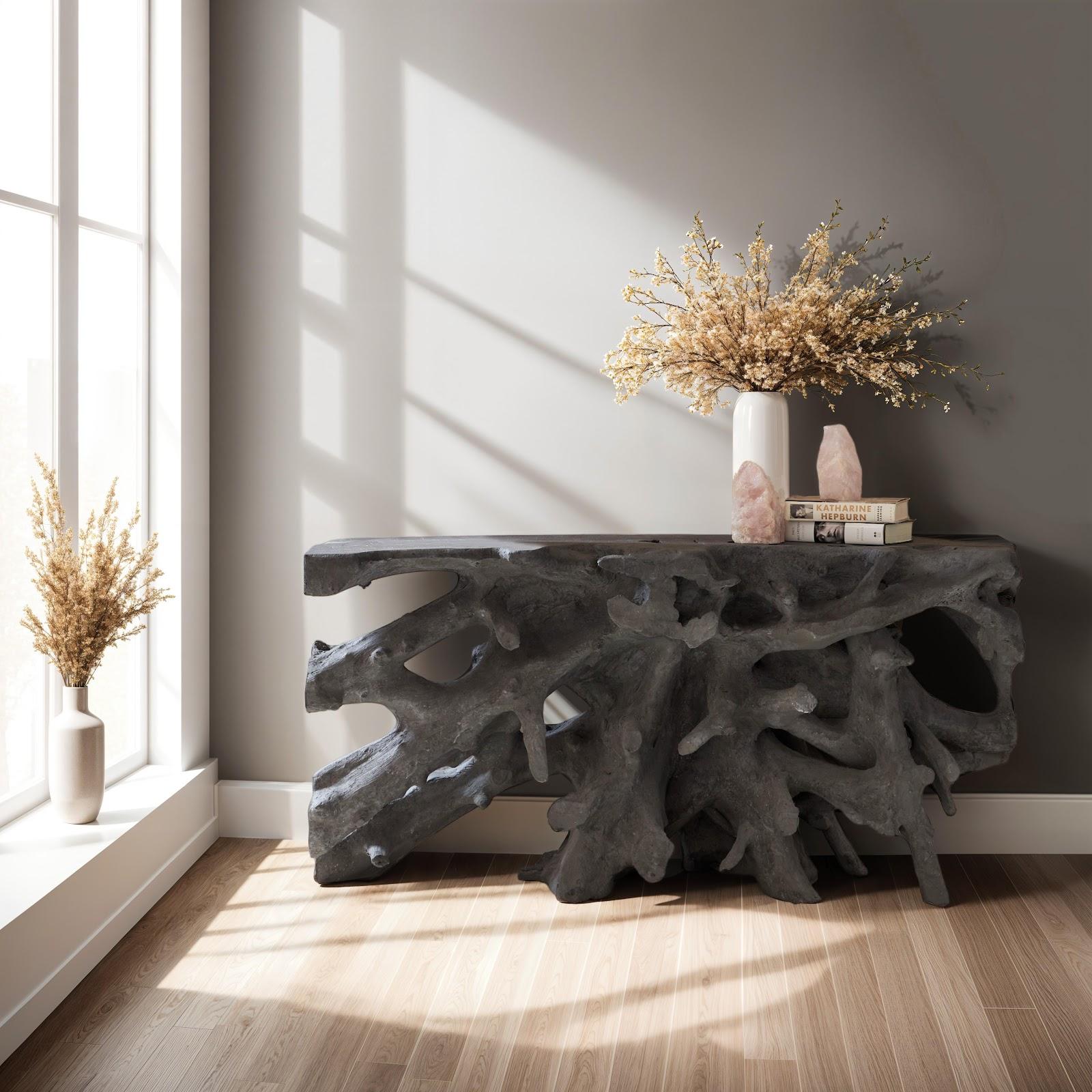Beau Cast Root Console Table, Charcoal Stone