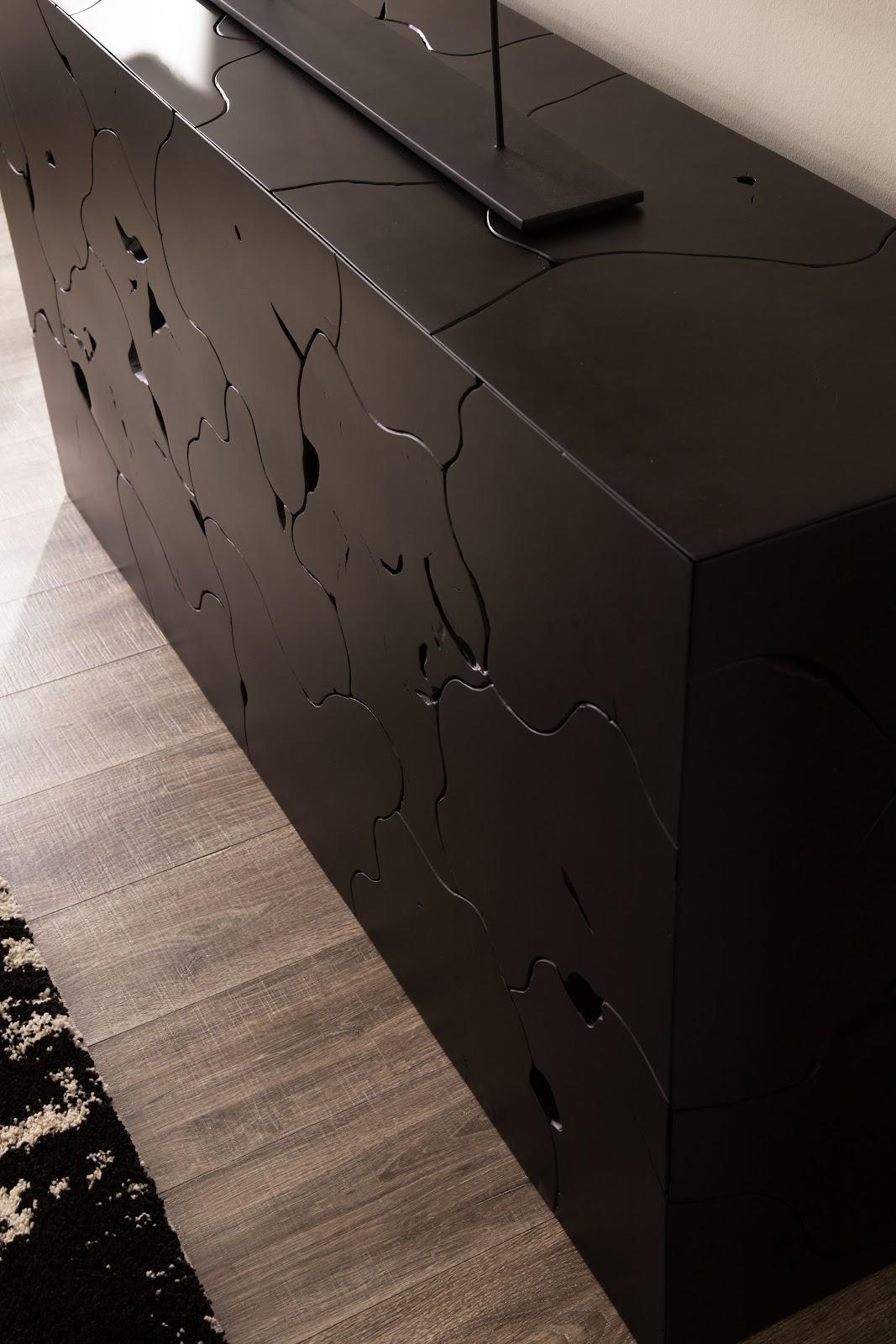 Description removeWith exquisite craftsmanship, we have rescued the scrap pieces of teak wood that are hand assembled to create the Teak Slice Black Console Table from being one of Nature’s finest castaways. Though the shape is simple, the complexity of the parts that make up the whole illustrates the talent of our craftspeople. When a hint of texture is desired, this wood console table will bring it; it is also fitting for a number of design styles, including a contemporary, modern farmhouse, and industrial chic. There are a number of furnishings and accessories in the Teak Slice collection.Notice keyboard_arrow_downThis piece is crafted from natural solid wood. Color and character of wood grain may vary, adding a unique character to your piece.