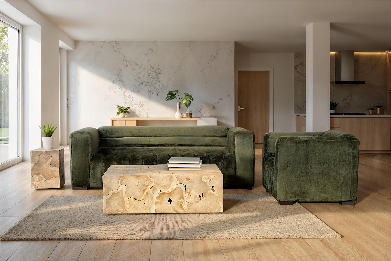 Description removeVintage glamour with a modern edge. The Baccarat Sofa makes a dramatic statement with its structured silhouette and richly textured channel tufting. Wrapped in velvety Lush Green polyester, the fabric catches the light with a moody sheen that adds depth and dimension. The low-profile frame, squared arms, and elongated seat create a sleek yet inviting look.
