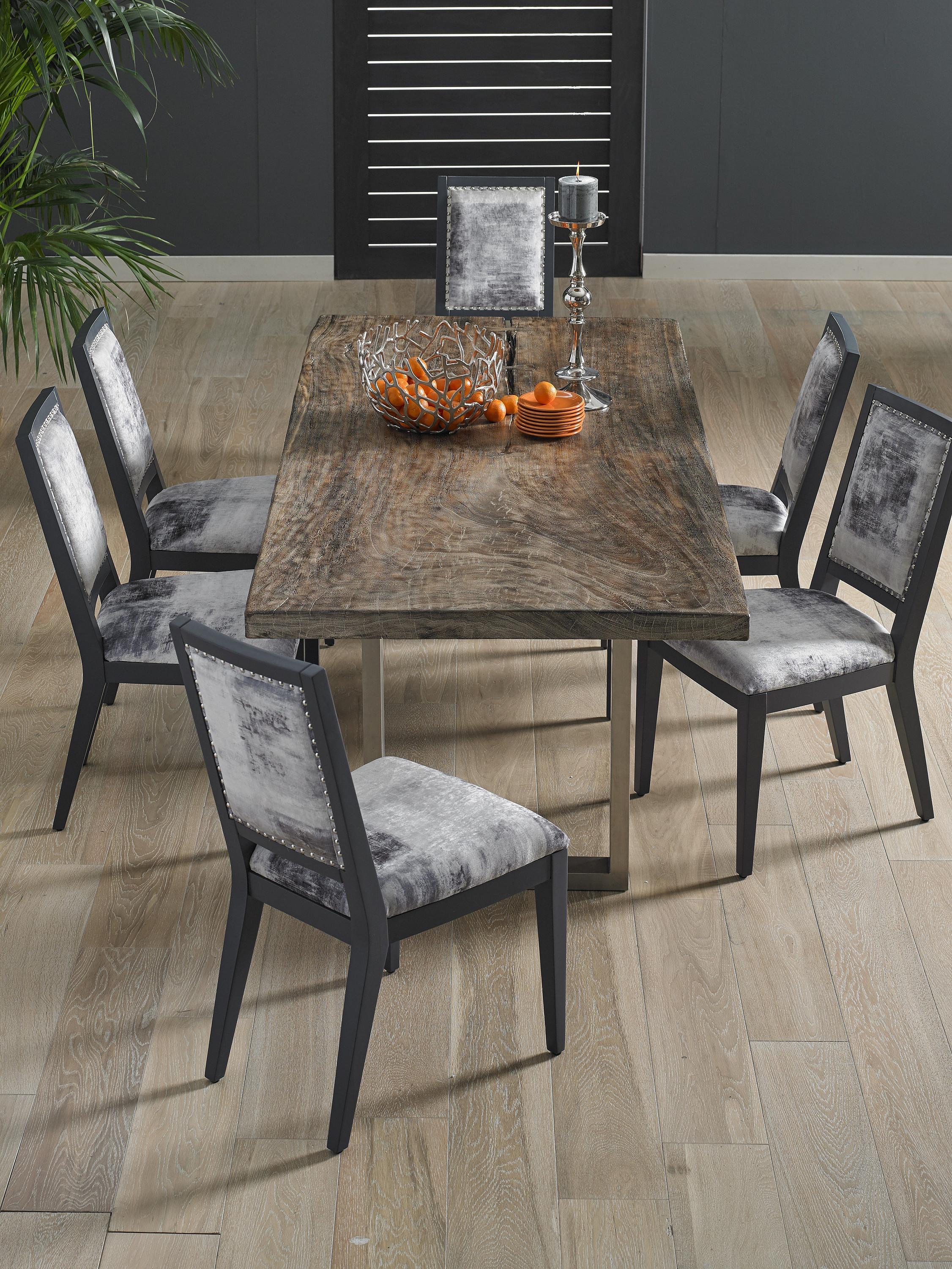 Description removeThe word “mesmerize” is not used as hyperbole when describing our Mesmerize Dining Chair. Beautiful polyester fabric is upholstered onto an attractive gray wooden frame. The fabric boasts a distressed look, with splashes of black and white intermingling to create a gorgeous watercolor-like effect. As the cherry on top, stunning nailhead trim outlines the front and rear of the backrest to unbelievable effect. The fusion of sleek form and attractive materials will infuse your dining space with an unforgettable sense of atmosphere that will leave you and your guests mesmerized.
