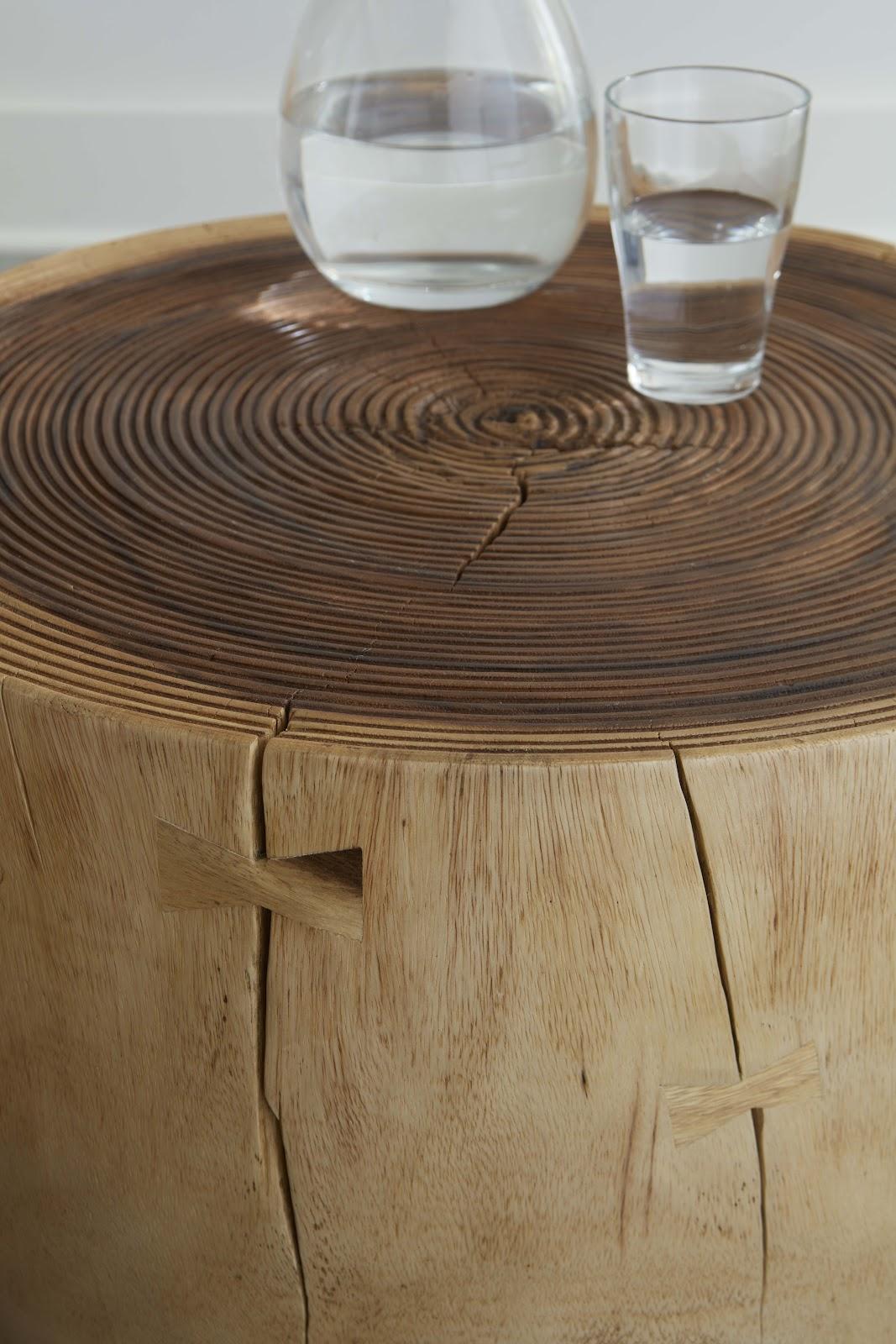Description removeWe at Phillips Collection are known for our furnishings in personable chamcha wood, a golden acacia that we responsibly source from the jungles of Asia. We have rescued the reclaimed chamcha wood pieces like the Lathe Chamcha Side Table from being one of one of Nature’s finest castaways by making them into elemental design statements. One design distinction of note on this wood side table is the natural graining of the material on the sides and the textural beauty of the rings on the top that illustrate the life of the tree. This round side table reflects the ethos that Phillips Collection personifies: modern organic.Notice keyboard_arrow_downThis piece is crafted from natural solid wood. Color and character of wood grain may vary, adding a unique character to your piece.