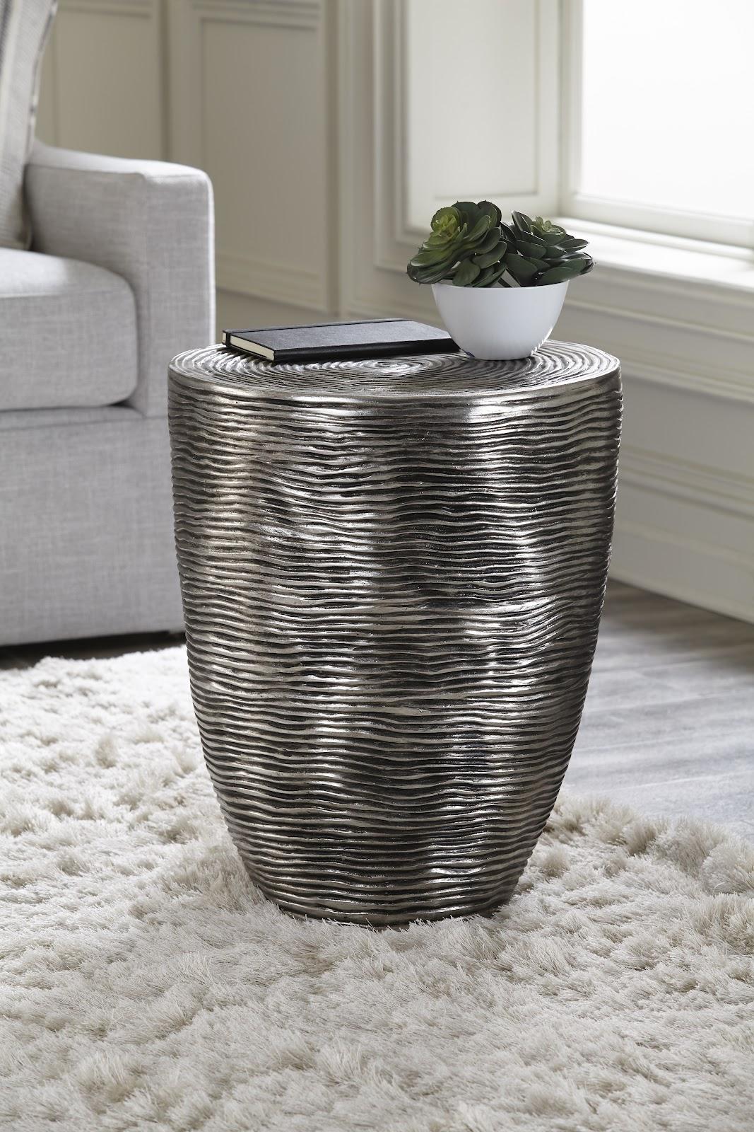 Description removeThe Ripple Silver Side Table is a luminous round occasional table made of composite in a silver leaf finish. It will look stunning on a dark carpet given the sheen. The rings that are pressed into its surface add a hint of texture to a space. We also offer a set of four wall disks, a round mirror, and a coffee table in this family of products. This accent table reflects the ethos that Phillips Collection personifies: modern organic.Notice keyboard_arrow_downThe silver leaf finish applied to our products is known for its luxurious metallic appearance. However, this finish can be susceptible to scratching if not handled carefully. Silver leaf is a delicate material; abrasions may occur during routine use or contact with abrasive surfaces.