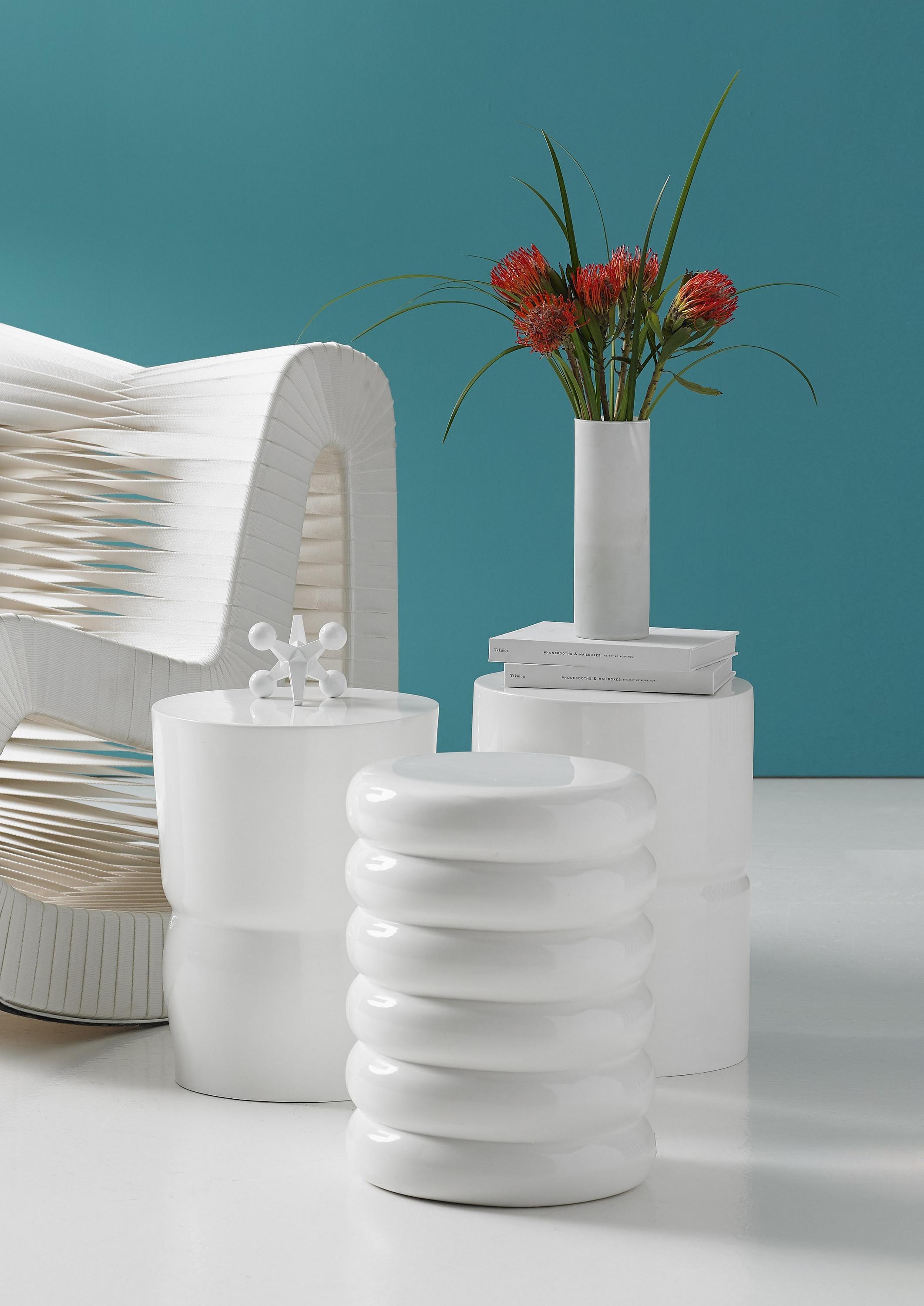 Description removeCrisp and contemporary in its lines, the Stacked White Stool is so versatile, most interior styles will welcome it with aplomb. Made of composite in a gel-coat white finish, the lightweight nature of the material from which it is made means it is very easy to move around without sacrificing strength. Place it almost anywhere for a last-minute addition to a seating grouping, or pull it up to a sofa or club chair and it becomes a drinks table. We also offer this design in a polished bronze finish.