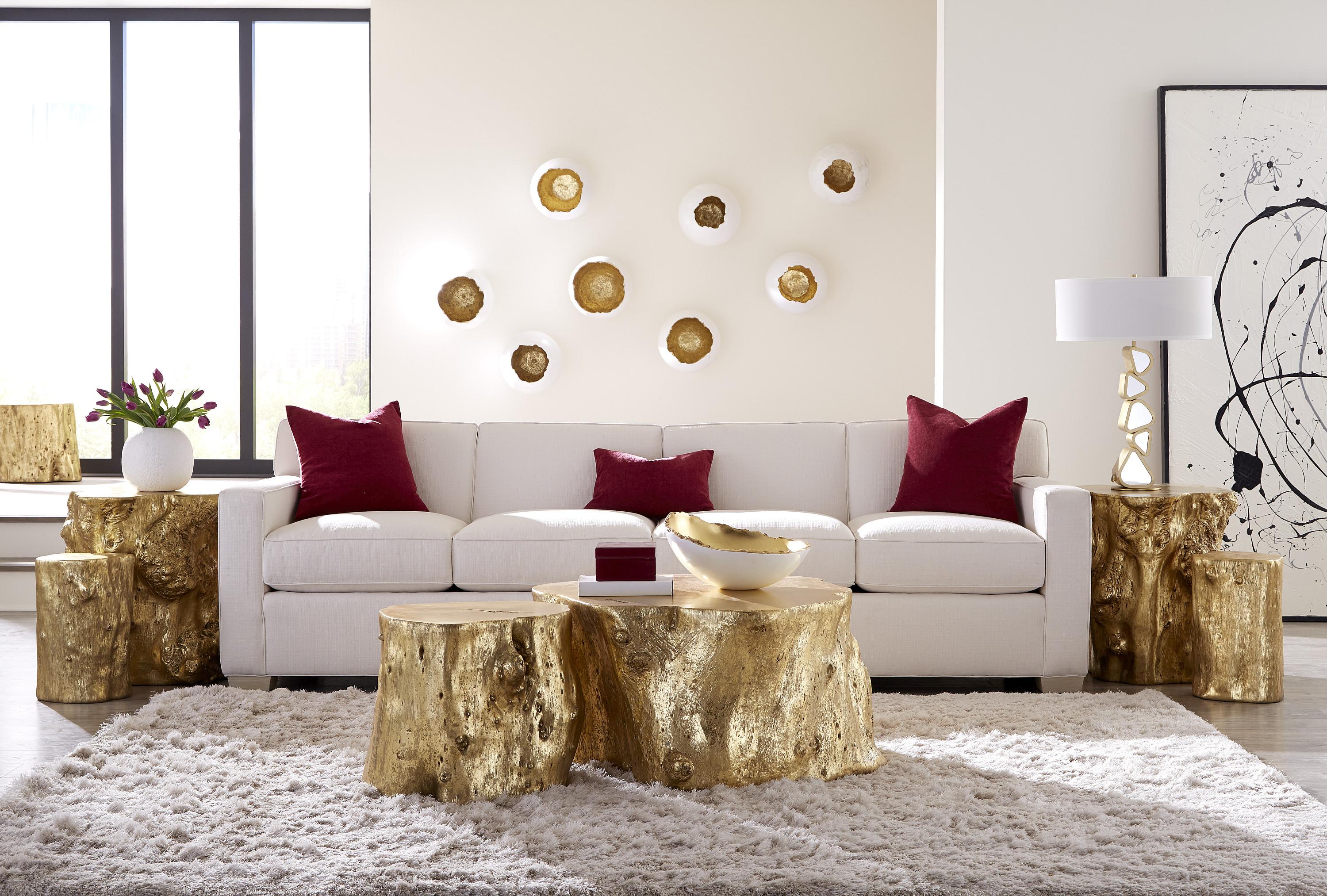 Description removeImitating Nature is one thing, but bringing the elemental symbols we see in the woods a hint of bling is a passion for us at Phillips Collection. Case in point is our Log Large Gold Stool, which is made of composite in a luminous gold leaf finish. Cast from a real log, this tree-trunk stool in our Cast Naturals Collection personifies our ethos of modern organic. By treating the surface of this log stool to such a brilliant finish, we’ve created a chic piece for contemporary interiors. Just imagine how perfectly it will fit into the décor of a modern apartment or a sleek coastal condo! We have a number of tables and decorative pieces in varied finishes in this family of products.Notice keyboard_arrow_downThe gold leaf finish applied to our products is known for its luxurious metallic appearance. However, this finish can be susceptible to scratching if not handled carefully. Gold leaf is a delicate material; abrasions may occur during routine use or contact with abrasive surfaces.