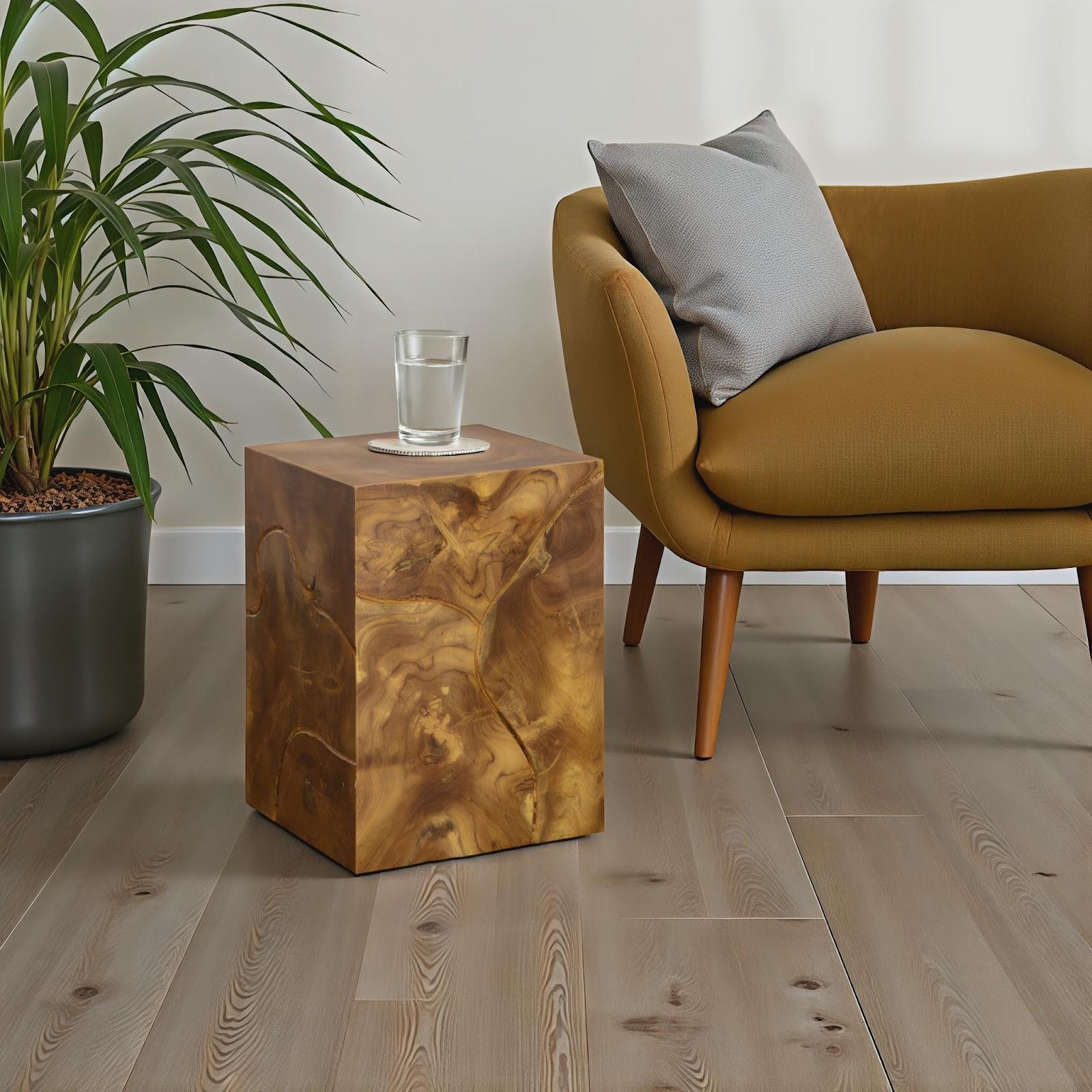 Teak Slice Stool, Square, Warm Teak Red Finish