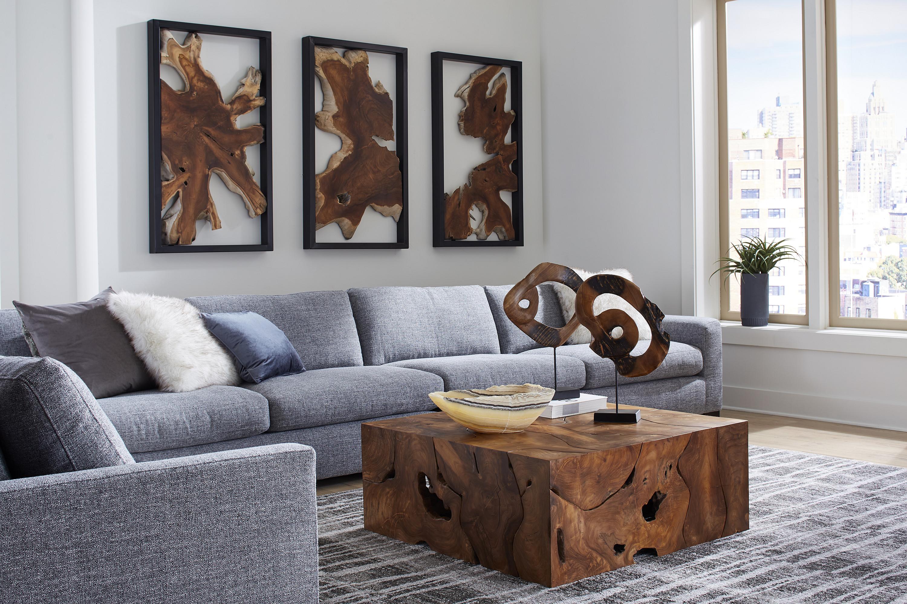 Description removeWith exquisite craftsmanship, we have rescued the scrap pieces of teak wood that are hand assembled to create the Teak Slice Square Coffee Table from being one of Nature’s finest castaways. Though the shape is simple, the complexity of the parts that make up the whole illustrates the talent of our craftspeople. When a hint of texture is desired, this wood coffee table will bring it; it is also fitting for a number of design styles, including contemporary, modern farmhouse, and industrial chic. There are a number of furnishings and accessories in the Teak Slice collection.Notice keyboard_arrow_downThis piece is crafted from natural solid wood. Color and character of wood grain may vary, adding a unique character to your piece.