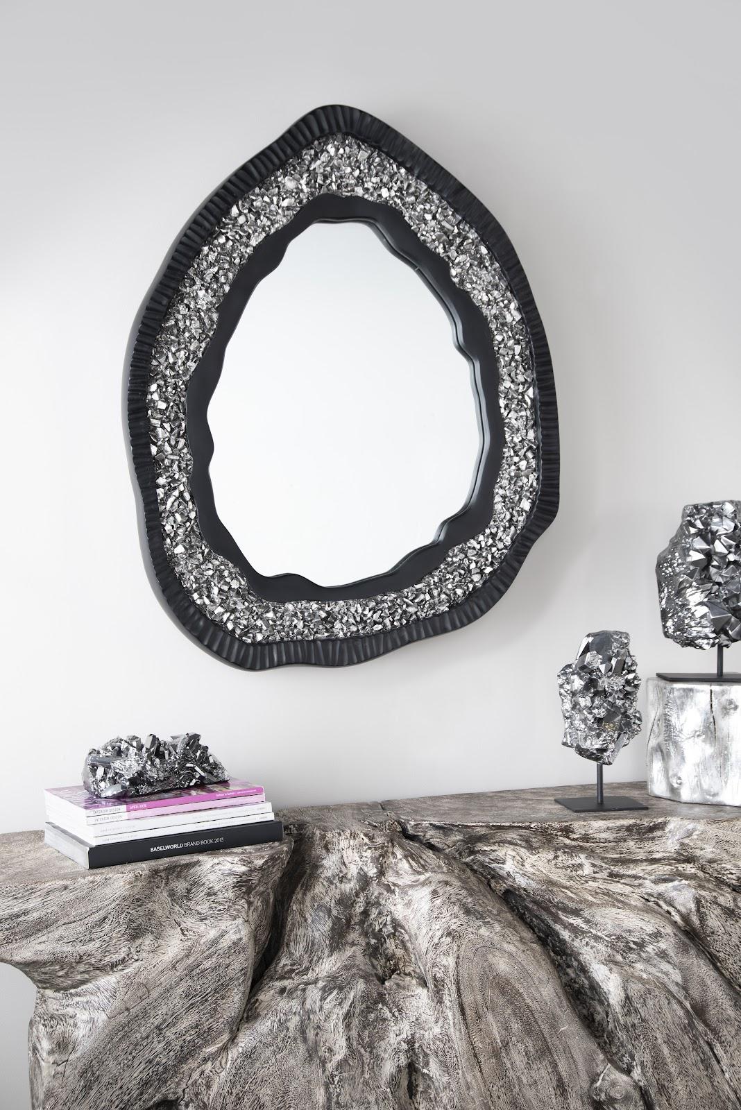 Geode Mirror, Black And Silver, Matte