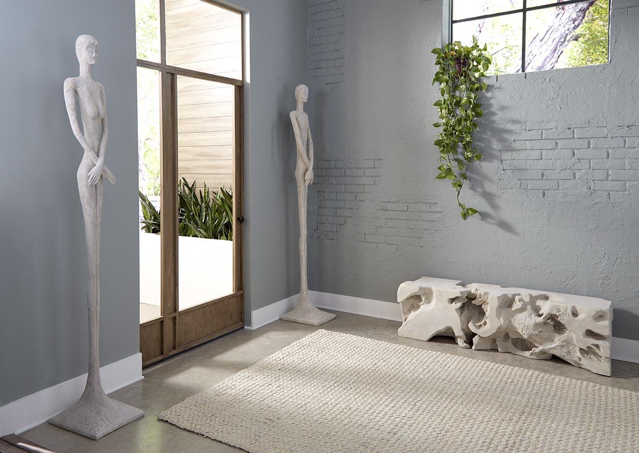 Description removeThe contemporary profile of the Lloyd Roman Stone Sculpture has a mid-century modern vibe. Made of composite in a Roman stone finish, the off-white sculpture, which has a ruddy surface that makes it appear as if it has been forged from hammered metal, was designed by Raymond Waite. Lloyd will add panache to a display with other decorative accessories on a side table, a foyer table, or a library shelf. We also offer the ivory sculpture with our Lottie Sculpture as a set, singly in bronze, white, silver, and liquid silver finishes, and as wall sculptures in bronze and silver finishes. Each of these reflects the ethos that Phillips Collection personifies: modern organic.Notice keyboard_arrow_downOur Roman Stone finish is crafted using a unique blend of crushed stone and resin, backed by a durable fiberglass structure. As a result of this artisanal process, hairline cracks may naturally appear in the surface. These fine lines are an expected characteristic of the material and do not compromise the strength, stability, or structural integrity of the piece. They are not considered defects or damage. Each item reflects the handcrafted nature of the Roman Stone finish, adding to its individual charm and timeless appeal.