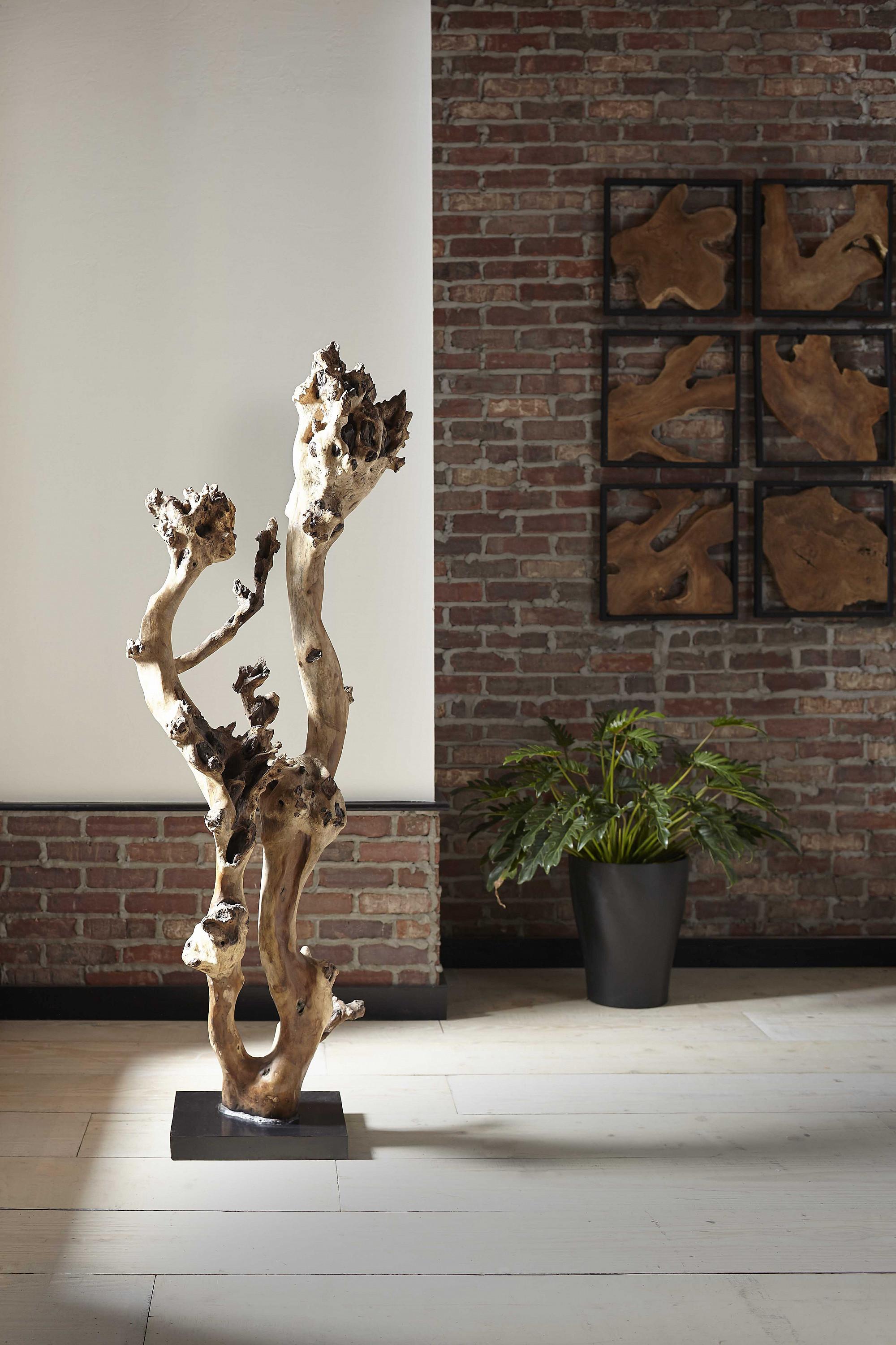 Description removeMother Nature was out to beat the abstract expressionists at their own game when she conceived the Abstract Wood Sculpture. We left the piece of natural wood alone except to level off the bottom so we could affix it steadily to the black base. It will be a conversation starter when introduced into a room because it's a strapping 64-inches tall. The fluidity of its shape and its contemporary vibe exemplifies the Phillips Collection ethos of modern organic.Notice keyboard_arrow_downThis piece is crafted from natural solid wood. Color and character of wood grain may vary, adding a unique character to your piece.