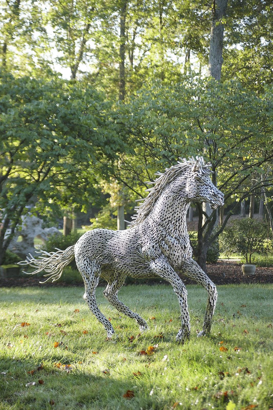 Horse Pipe Sculpture, Galloping, Stainless Steel