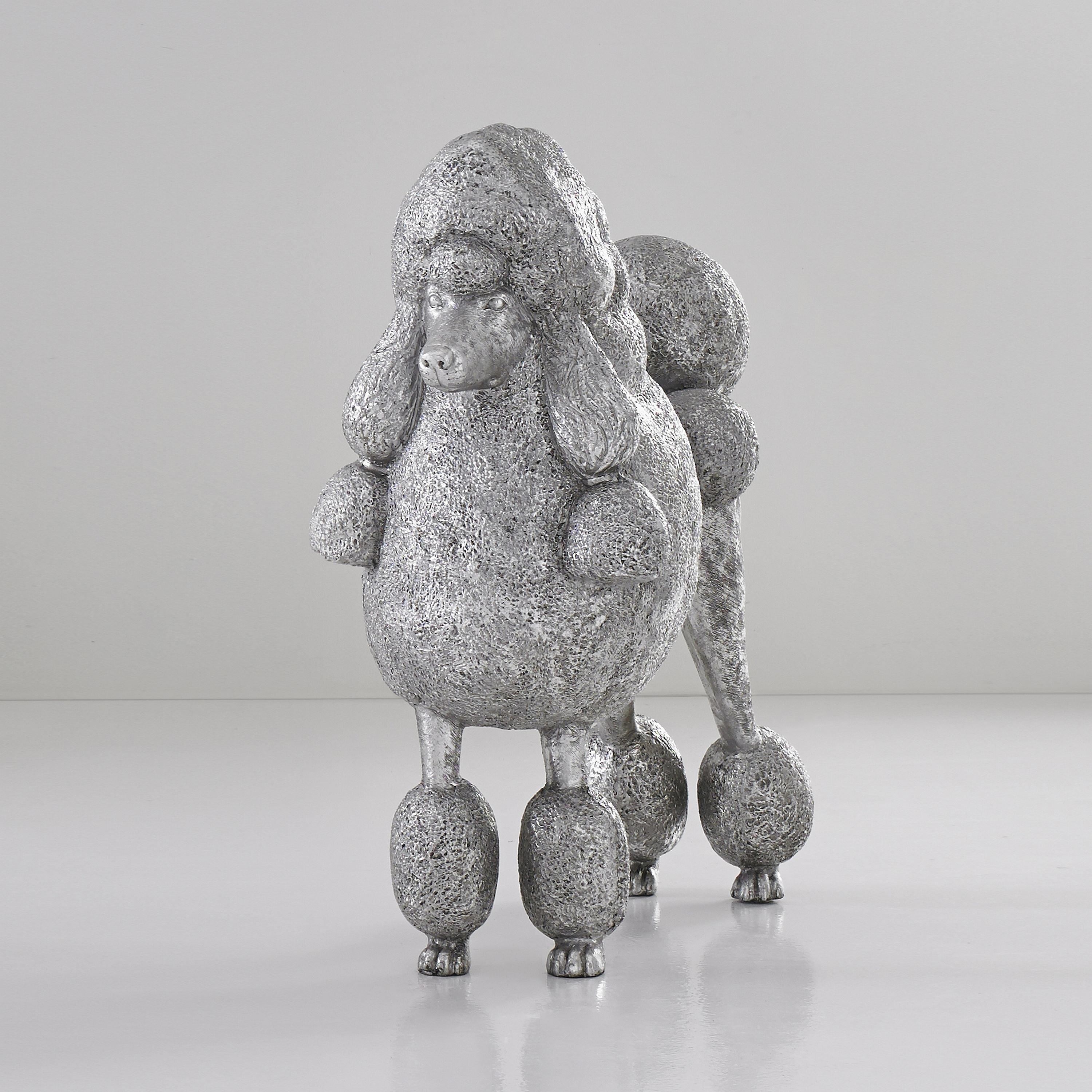 Description removeCast in artisan-grade resin and hand finished in silver leaf, this realistic canine makes a glamorous pet.Notice keyboard_arrow_downThe silver leaf finish applied to our products is known for its luxurious metallic appearance. However, this finish can be susceptible to scratching if not handled carefully. Silver leaf is a delicate material; abrasions may occur during routine use or contact with abrasive surfaces.