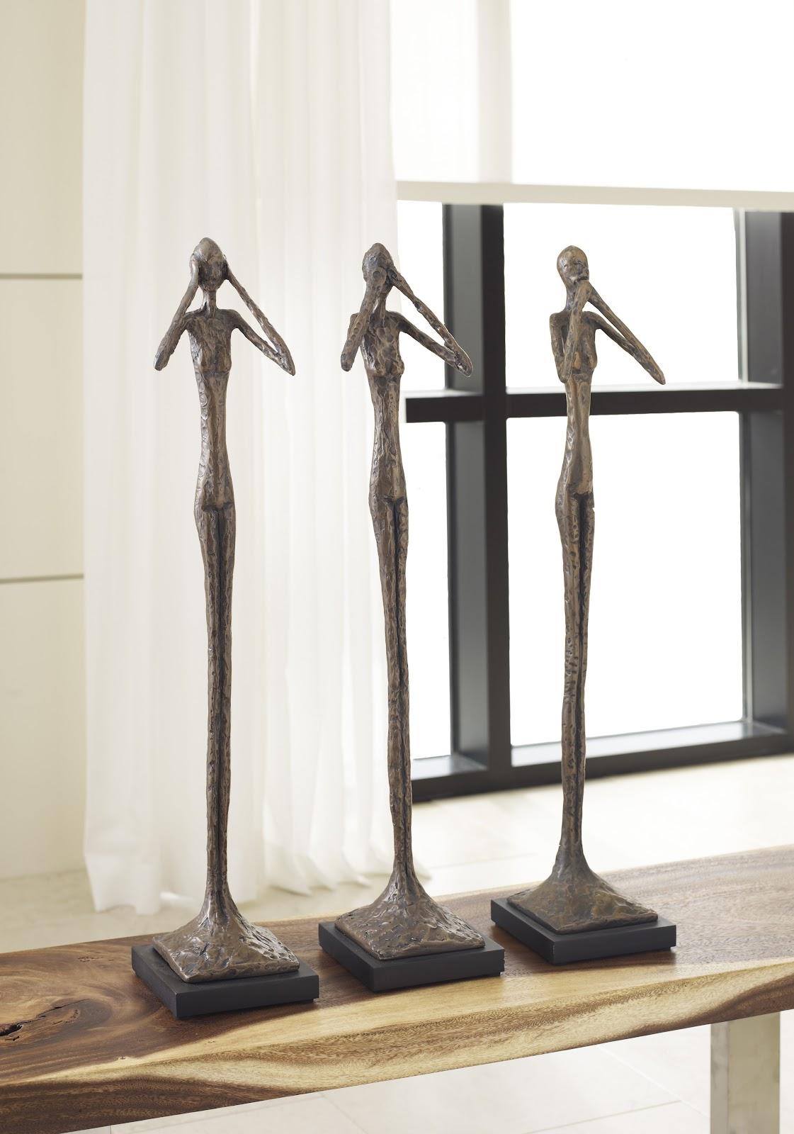 Description removeThin is in, as the saying goes, which means the Speak No Evil Small Skinny Bronze Sculpture will be a remarkably popular decorative accessory in any décor style. Designer Raymond Waites has created this family of decorative sculptures, one of our most popular collections. This pared-down sculpture is cast in composite and finished with actual bronze powder to make it feel like metal. We also offer the bronze sculpture in a larger size and in several different sizes in a silver finish. Each of these reflects the ethos that Phillips Collection personifies: modern organic.Notice keyboard_arrow_downThis item is finished using real bronze powder, making it not only appear bronze, but also take on the properties of real bronze. Please note if this item is used outdoors or exposed to water, the finish will develop a patina.