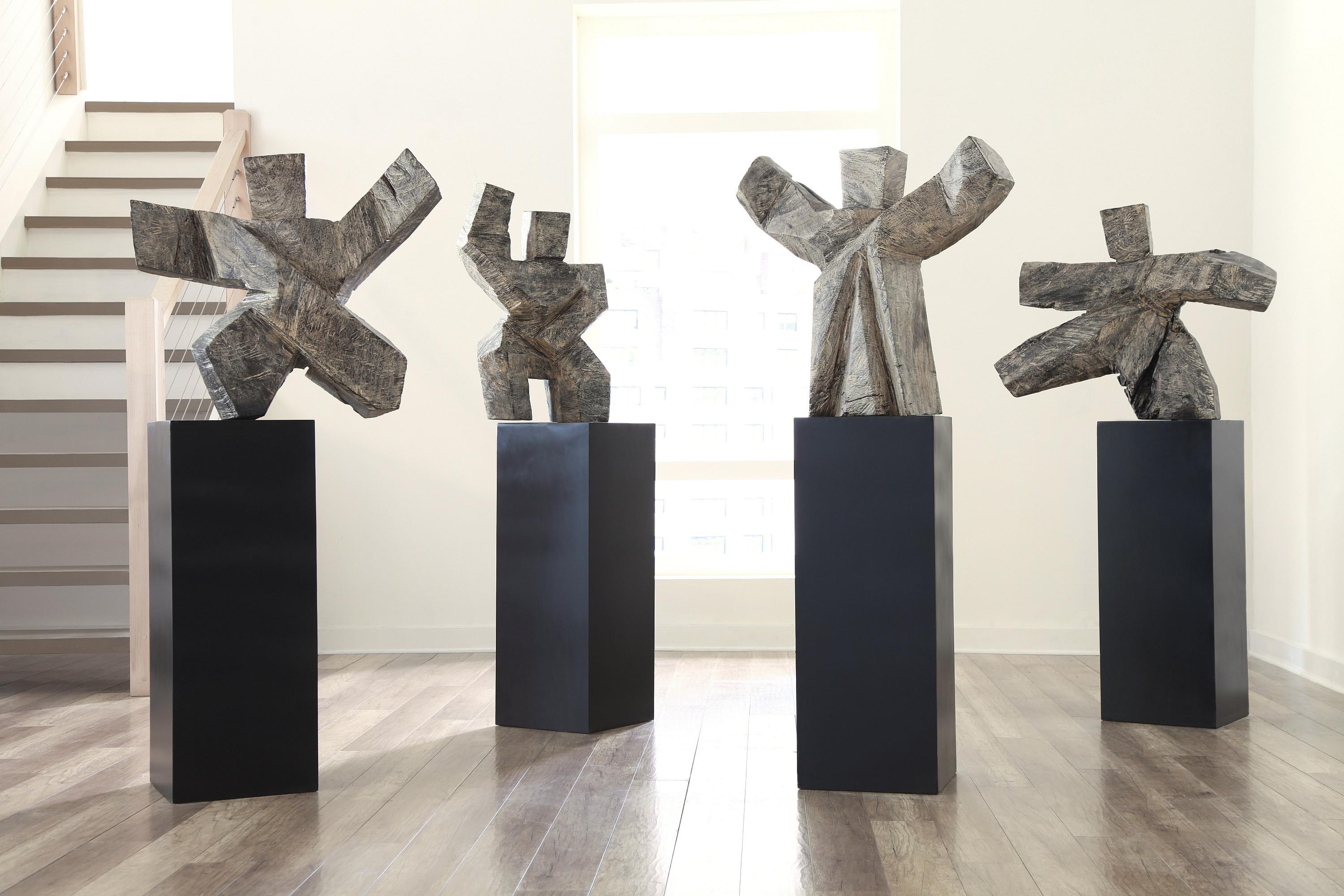 Description removeThe Tai Chi Winner Sculpture celebrates the ancient form of Chinese martial arts that is practiced for defense training, health benefits, and meditation. There are four different positions in this family of wood sculptures, each carved from a solid piece of chamcha wood, an acacia species native to Thailand, that is finished with a special stone-like patina. They come affixed to their pedestals, which we have left in a dark brown finish for contrast. Each of these sculptures exemplifies the Phillips Collection ethos of modern organic.Notice keyboard_arrow_downThis piece is crafted from natural solid wood.