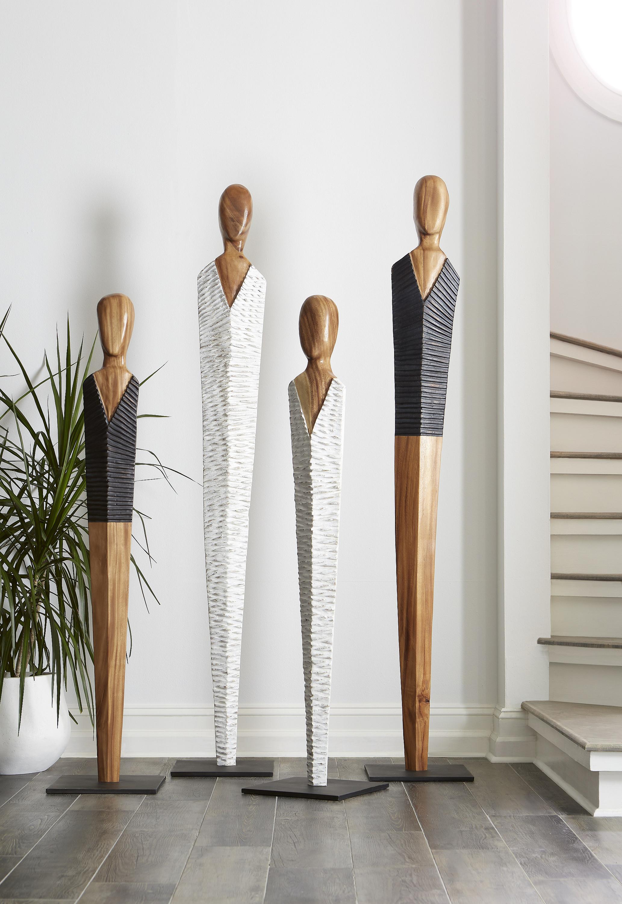 Description removeThe human figure has been whittled down to its most minimal form to bring the Small Vested Male Sculpture a contemporary cleanness. Extending from a minimalist metal base, the brown and black sculpture is carved from solid chamcha wood that has been painted and treated to a textured etching. There are several sizes of this wood sculpture and we also offer a female version. Each of these are serene and charming sculptural accents for any space, which makes them a perfect fit for Phillips Collection's modern organic ethos.Notice keyboard_arrow_downThis piece is crafted from natural solid wood. Color and texture in wood will vary and natural holes and subtle openings add unique character to your piece. Wood "breathes" and it is normal for cracks to present themselves over time. This is not considered a defect.