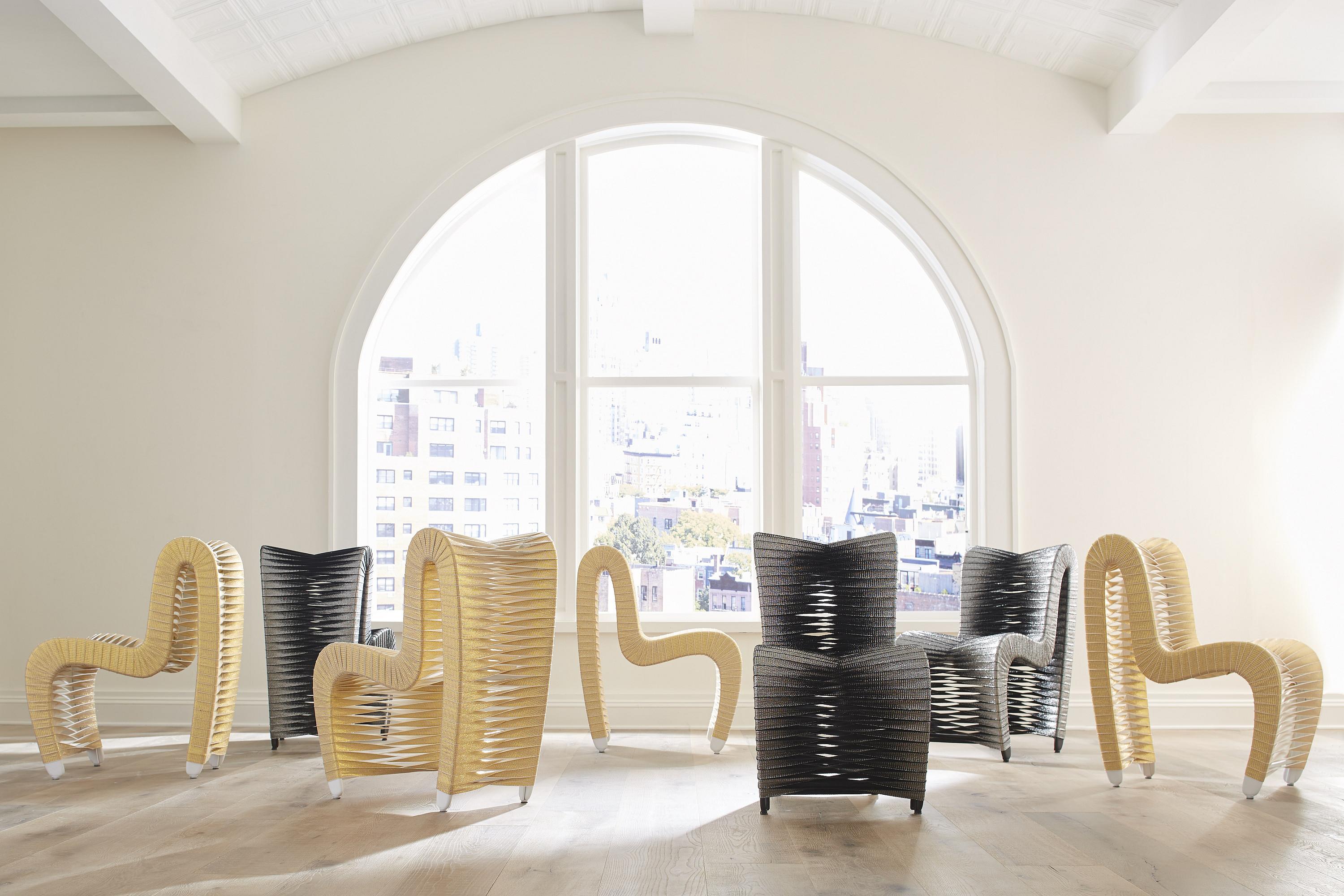 Description removeThe Seat Belt Metallic Silver Dining Chair is one of many offerings in this contemporary seating collection by award-winning Thai designer Nuttapong Charoenkitivarakorn. The design was inspired by the intertwining spools of fabric seen when visiting a seat belt factory. Nuttapong’s striking chairs are easily recognizable by the braided backside and stiletto profile. The straps are woven on a frame made of wood that is reinforced with metal. There are monochromatic and two-toned versions, each of which are available in many colors. We offer custom color matching for quantities of 16 or more. All of these reflect the ethos that the Phillips Collection personifies: modern organic.Notice keyboard_arrow_downWeight Limit: 275 lbs