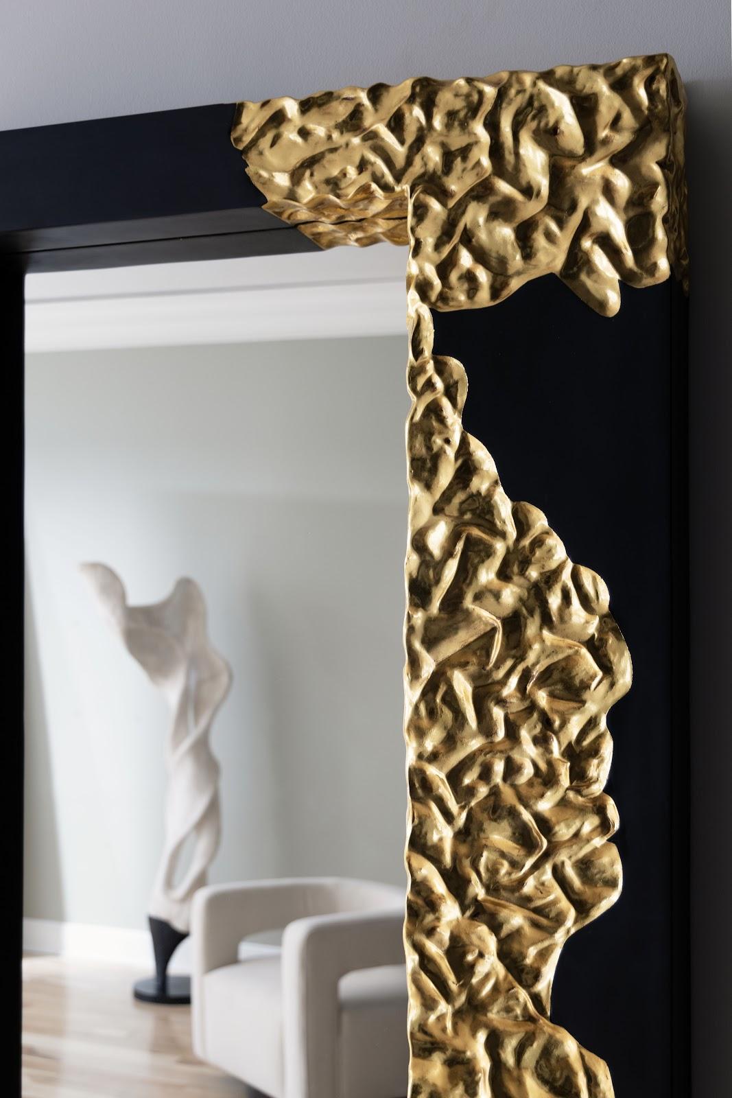 Description removeThe otherworldly pattern that flows along the frame of the Mercury Rectangular Black Gold Mirror makes a statement in its randomness, mimicking the surface of some far-away planet but with much greater style. Made of composite in a intermingling of black and gold leaf finishes, a design detail of note is how the decorative mirror’s frame is fluted where the gold pattern flows along it.Notice keyboard_arrow_downThe gold leaf finish applied to our products is known for its luxurious metallic appearance. However, this finish can be susceptible to scratching if not handled carefully. Gold leaf is a delicate material; abrasions may occur during routine use or contact with abrasive surfaces.