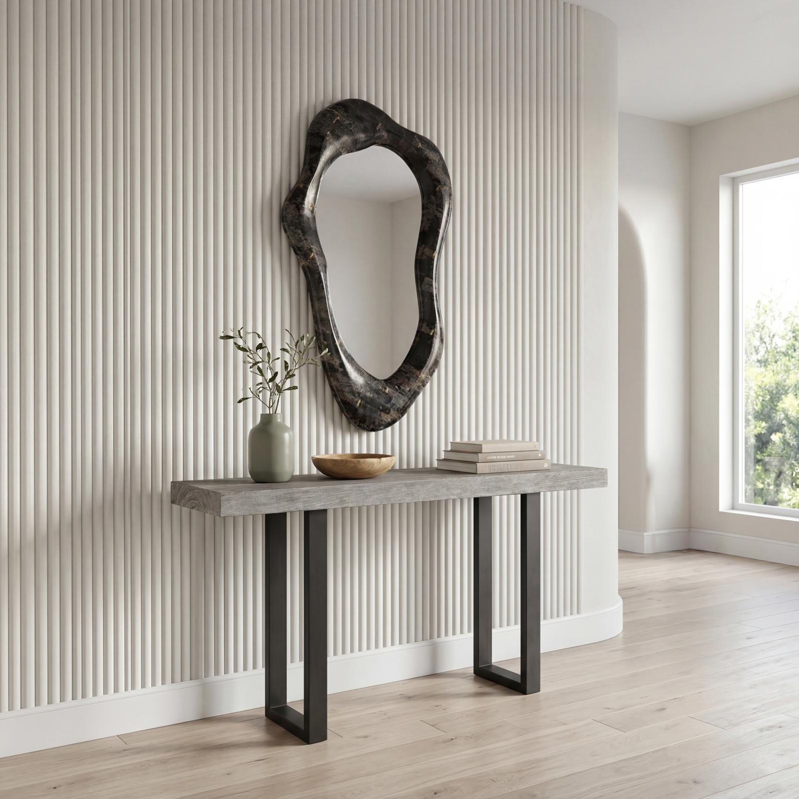 Description removeSculptural in form and elemental in spirit, the Morphic Petrified Mirrors in Black capture the organic beauty of nature through a lens of refined artistry. Each frame is meticulously composed of hand-cut petrified wood, polished to reveal darkened hues and subtle mineral veining. The fluid silhouettes, ranging from softly rounded to strikingly asymmetrical, echo the rhythms of the natural world, transforming each mirror into a statement of movement and materiality.Notice keyboard_arrow_downThis petrified wood piece may vary in color, ranging from light to dark tones. Each item may also feature inherent cracks, splits, and unique surface characteristics formed over time. These variations are expected and celebrated.