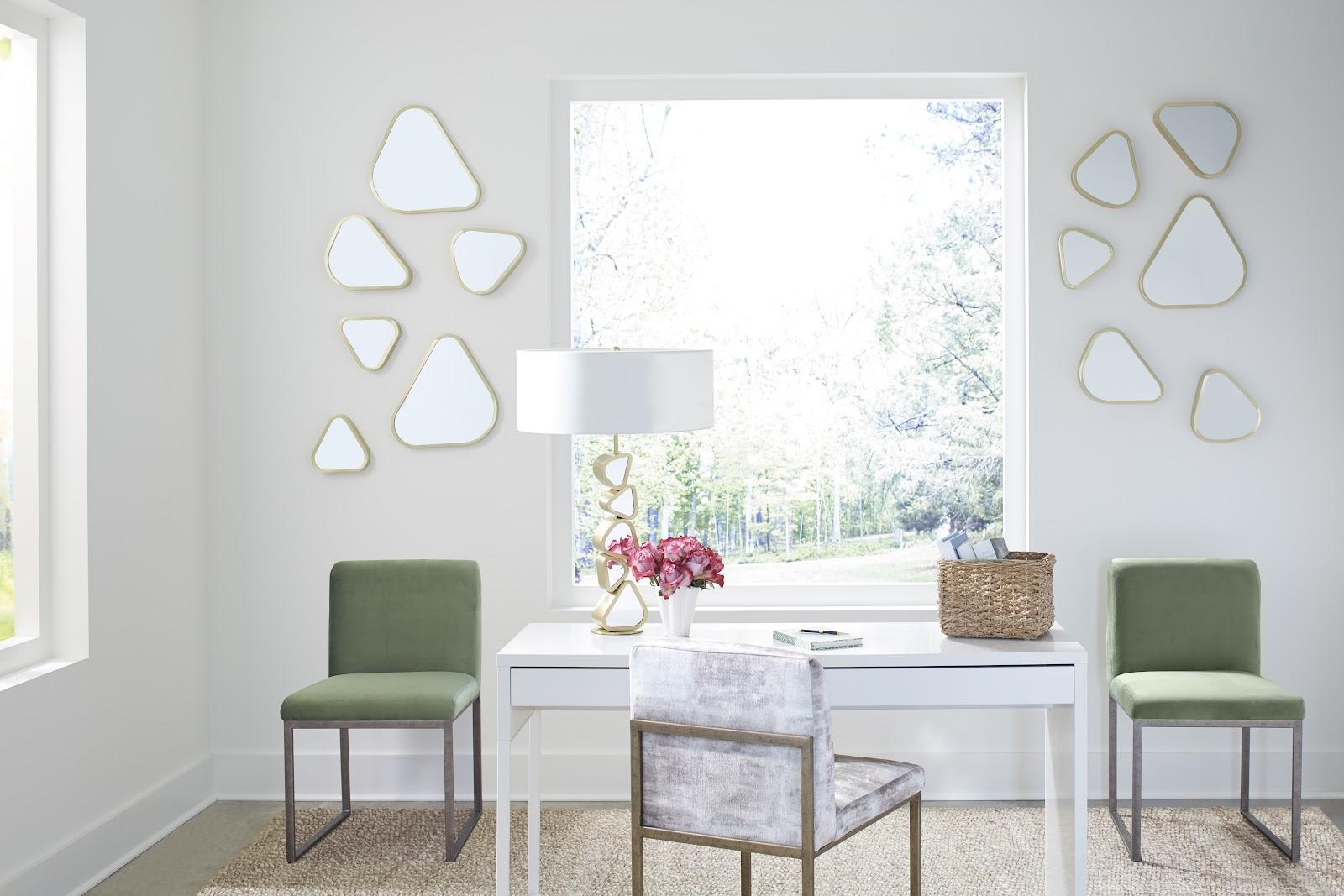 Description removeIf we described the Pebble family of products as stacked stones, we’d give the wrong impression, as these furnishings are not made of rocks; they are created from long lengths of playful shapes that are reminiscent of river rocks in contour only. These are created when organically shaped pieces of mirror are encased in metal in a brushed brass finish, as is the case with the Pebble Mirror Set. The collection also includes an end table, table lamps, and floor lamps, each of which reflects the ethos that Phillips Collection personifies: modern organic.