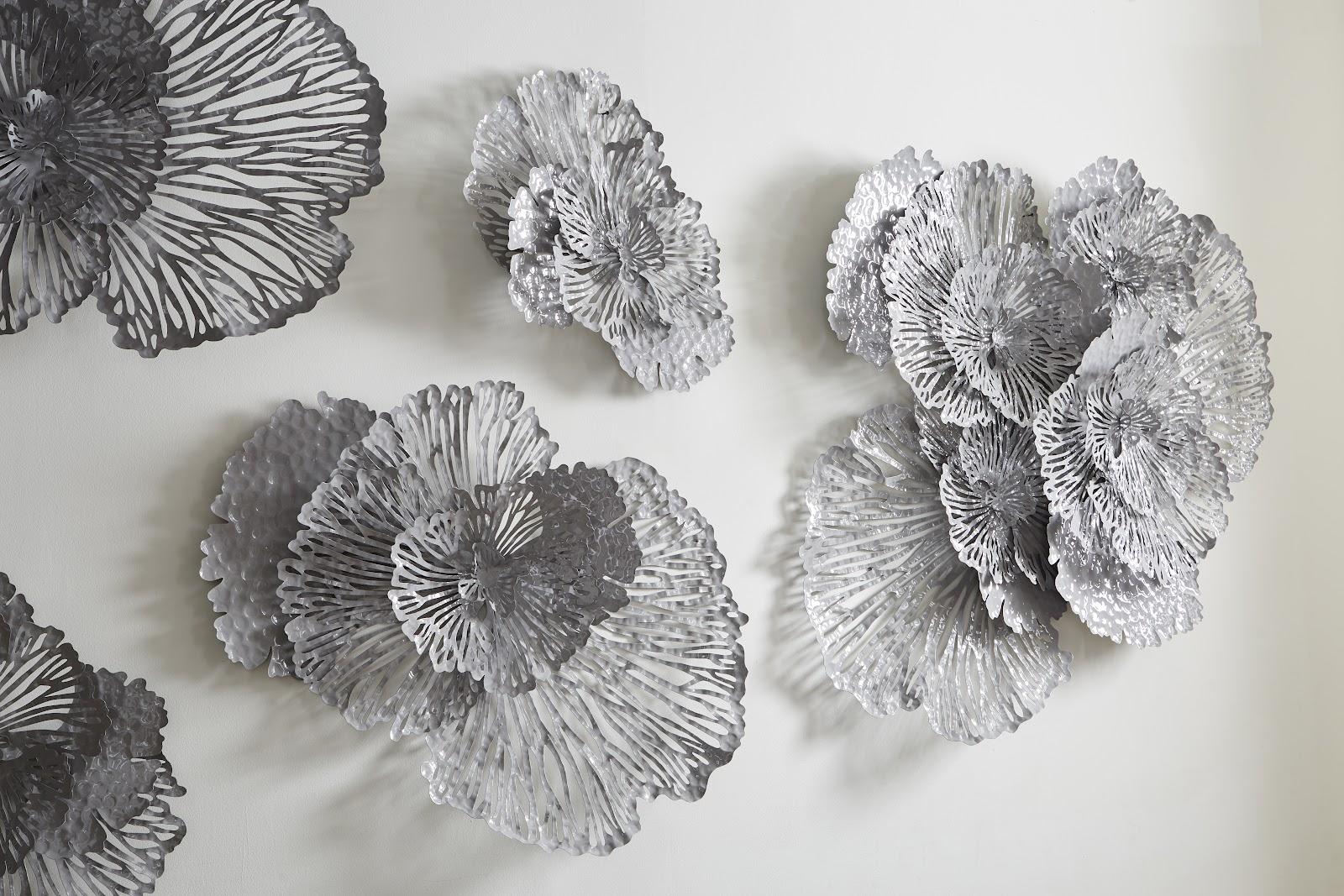 Flower Wall Art, Large, Gray, Metal