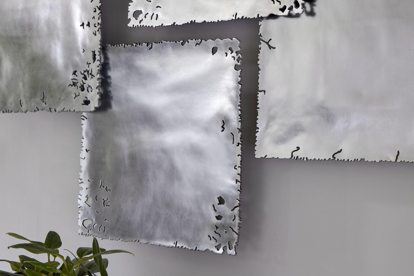 Description removeThe set of 3 Galvanized Square Wall Tiles in Silver is cast from artisan-grade resin and finished in a beautiful silver leaf. Creating wall tiles have been made to look tested and time-worn with jagged edges and minor splits that convey just the right amount of unique texture to deliver a jolt of personality to any interior space.Notice keyboard_arrow_downThe silver leaf finish applied to our products is known for its luxurious metallic appearance. However, this finish can be susceptible to scratching if not handled carefully. Silver leaf is a delicate material; abrasions may occur during routine use or contact with abrasive surfaces.