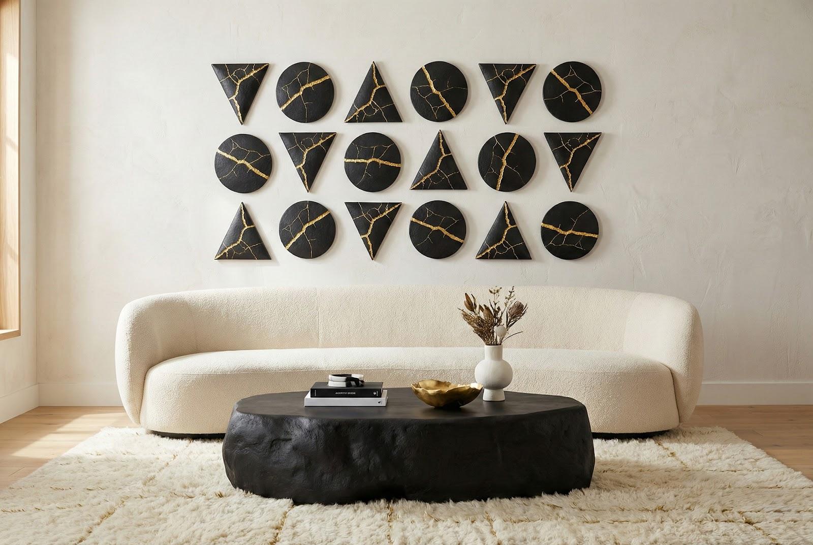 Rift Wall Tile, Triangle, Matte Black, Gold Leaf