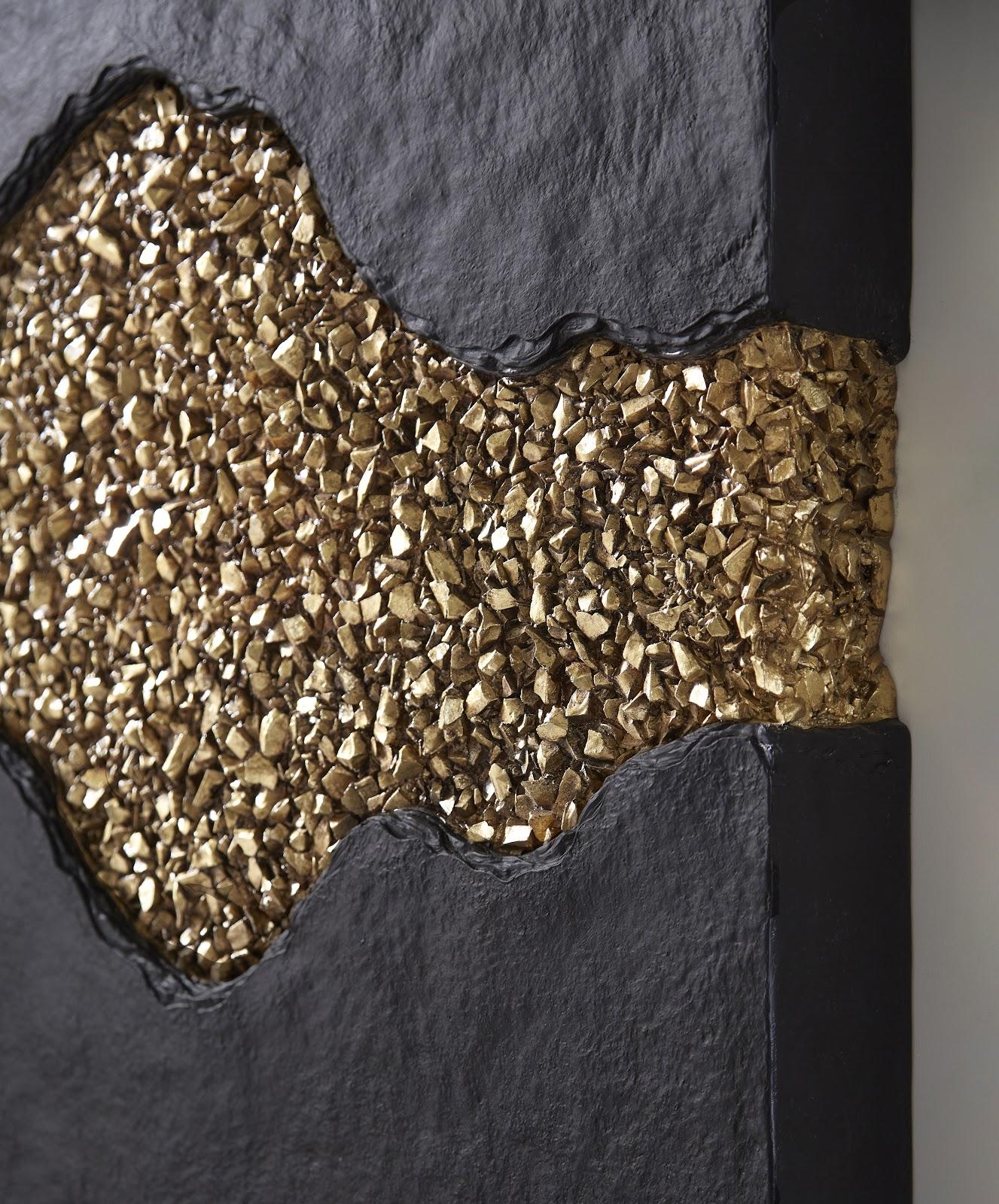 Description removeThe Geode Texture Wall Decor is a contradiction in several ways. Made of composite, the large statement piece has a textural gold river running along a smooth black background. Not only is there an interplay of rough and smooth juxtapositions on this black wall sculpture, the brightness of the gold and depth of the black prove that opposites attract. This rough luxe wall art reflects the ethos that Phillips Collection personifies: modern organic.Notice keyboard_arrow_downThe gold leaf finish applied to our products is known for its luxurious metallic appearance. However, this finish can be susceptible to scratching if not handled carefully. Gold leaf is a delicate material; abrasions may occur during routine use or contact with abrasive surfaces.