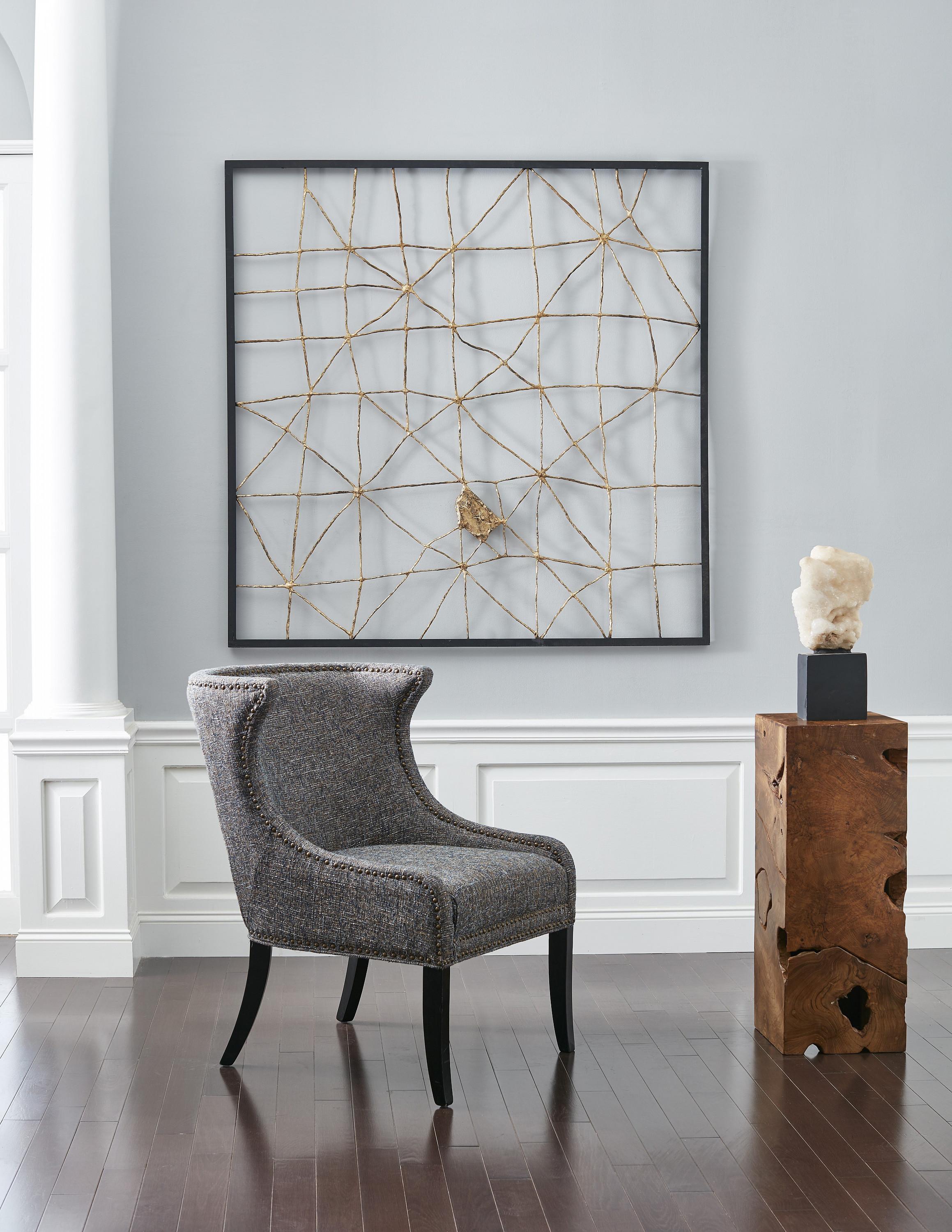 Description removeOpposites attract in the composition that we call the Mesh Wall Art. This results from the juxtaposition of dark and light finishes on the metal wall sculpture and the mix of smooth dark surfaces and textural light surfaces with their heavy dose of patina. It's large enough to be a focal point over a fireplace or buffet. The wall piece is made of iron but it's not overly heavy thanks to the lightness of the elements our artisans brought together. The abstract qualities intermingled with the contemporary feel of this piece exemplifies the Phillips Collection ethos of modern organic.