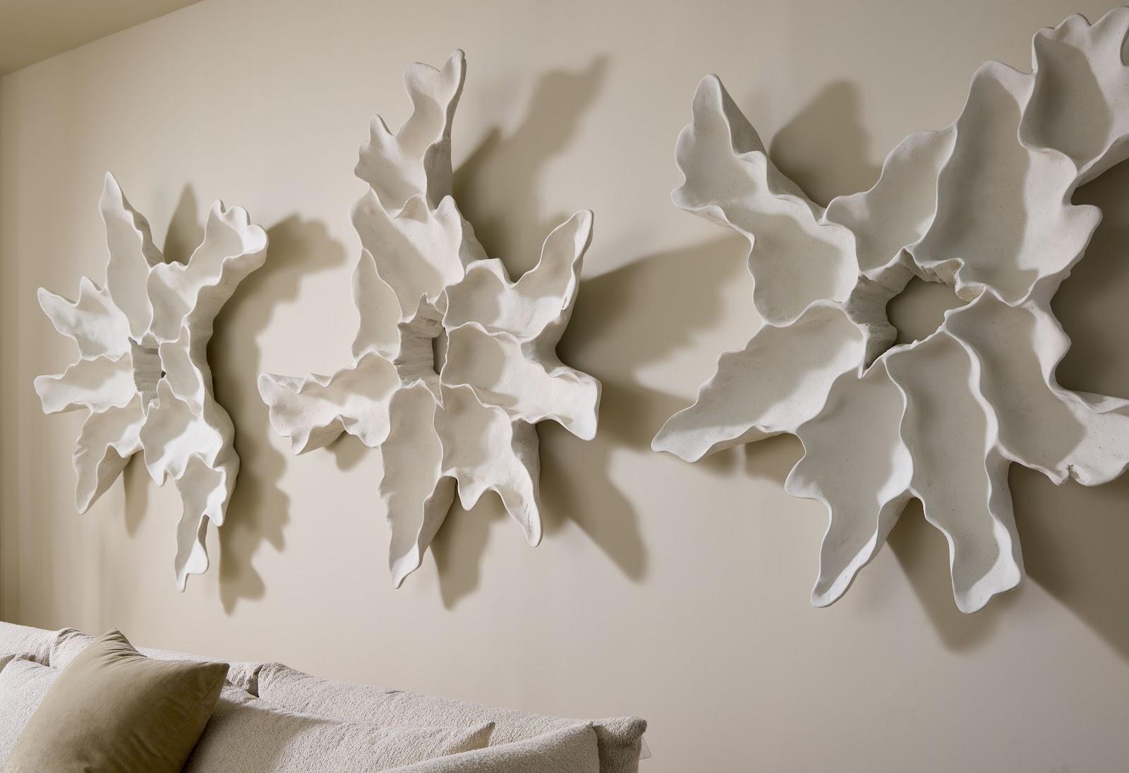 Contour Cast Root Flower Wall Art, White Stone