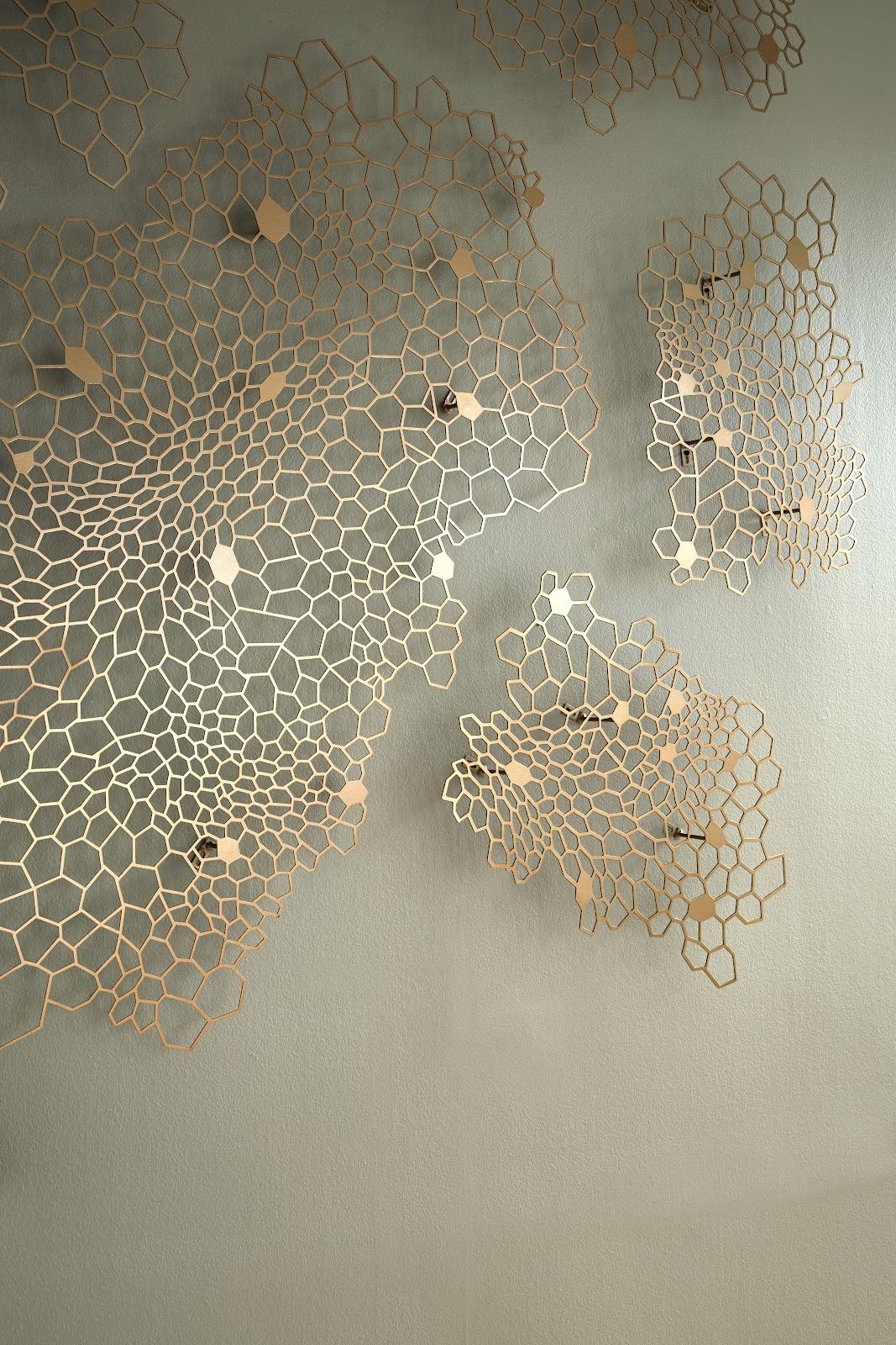Description removeThe Honeycomb Medium Wall Art will have those who spy it buzzing. Made from thick-gauge metal that is laser cut and finished in a satin metallic hue, the gold wall sculpture extends from its smartly hidden mounts to make it appear it is rippling. This gives the impression that the decorative accent is always in movement. We also offer the Honeycomb in small and large sizes, which makes these beautiful gold wall sculptures perfect for arranging in a gallery-wall installation. Each of these reflects the ethos that Phillips Collection personifies: modern organic.